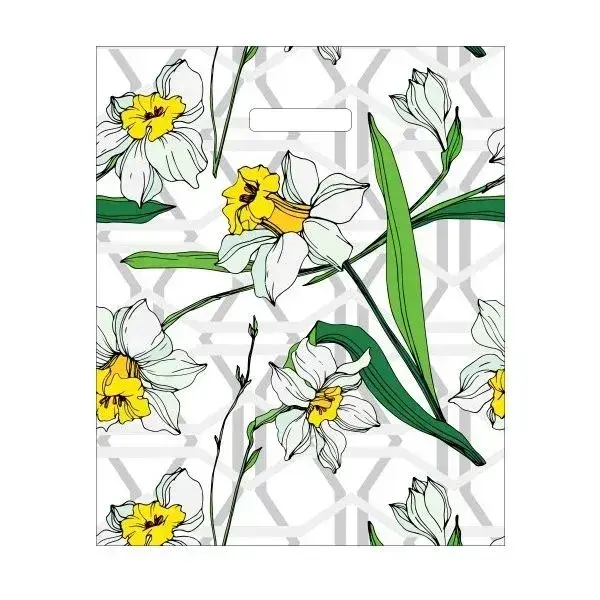 Пакет ПЭ с вырубной ручкой 36+3 см, цветочный дизайн, комплект 50 шт, для праздников и подарков