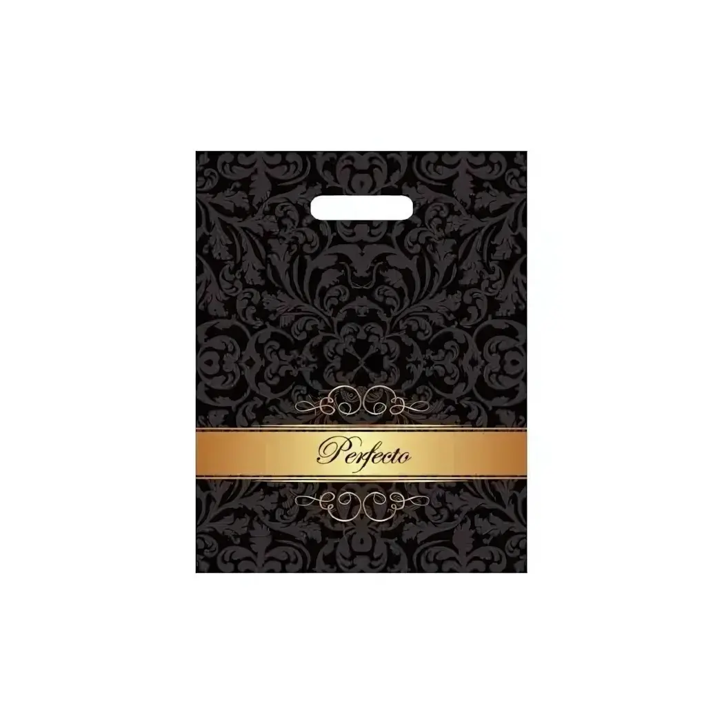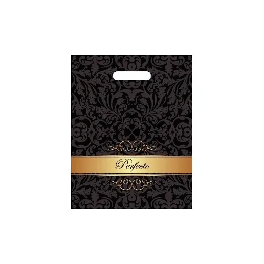 Пакеты ПЭ с вырубной ручкой серии 'Perfecto шайн' – это стильный способ подачи подарков, который порадует ваших клиентов или гостей. Элегантный дизайн с золотистыми акцентами и черным фоном создает атмосферу роскоши и праздника.