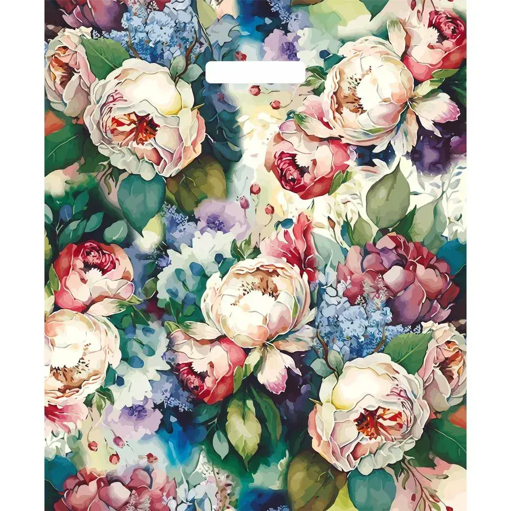 Набор из 25 прочных пакетов с оригинальным дизайном — идеальное решение для торжественных случаев. Глянцевая поверхность подчеркивает изысканность цветочного принта, а удобные ручки делают переноску подарков комфортной.