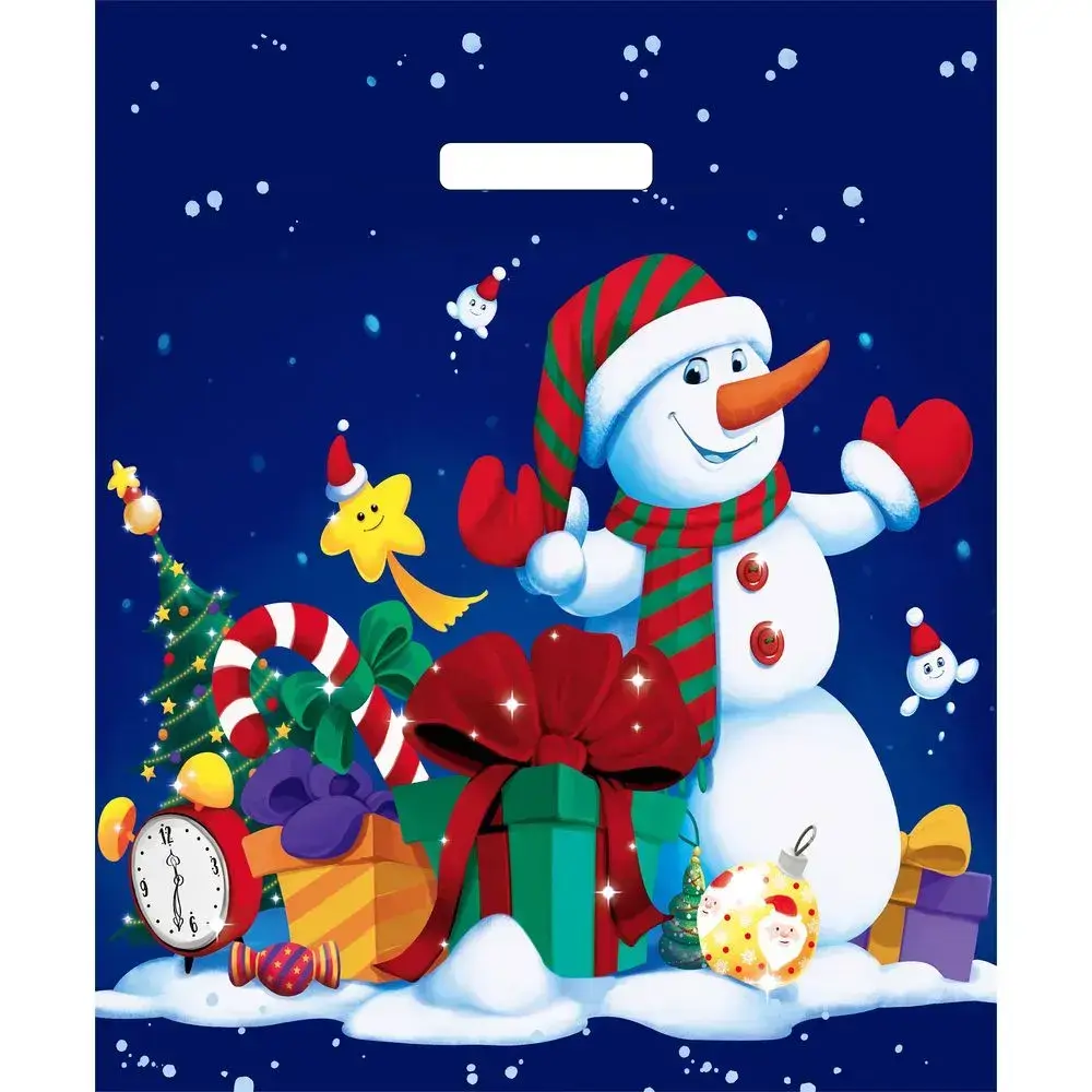 Пакет ПЭ с вырубной ручкой «Снеговичок с подарками» 38+3 см, комплект 25 шт, новогодний дизайн