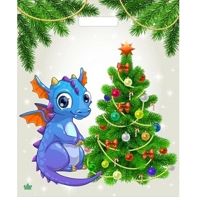 Пакет ПЭ с вырубной ручкой 'Дракоша у елки'