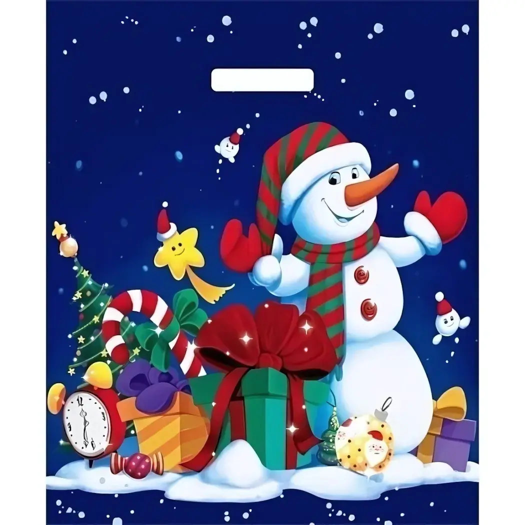 Пакет ПЭ с вырубной ручкой — это идеальное решение для упаковки новогодних подарков. Его яркий дизайн с изображением снеговика и подарков создаёт атмосферу праздника и радости. Этот пакет не только красивый, но и практичный, что делает его незаменимым атрибутом для новогодних праздников.