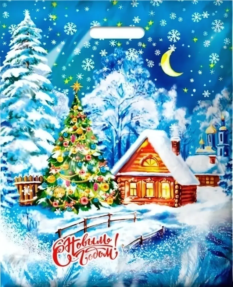 Пакет ПЭ с вырубной ручкой 38х47+6см — это не просто упаковка, а стильный аксессуар для ваших новогодних подарков. С его помощью вы сможете создать атмосферу праздника и порадовать близких. Ламинированный материал обеспечивает долговечность и защиту содержимого, а яркий новогодний дизайн с зимним пейзажем добавляет особый шарм.