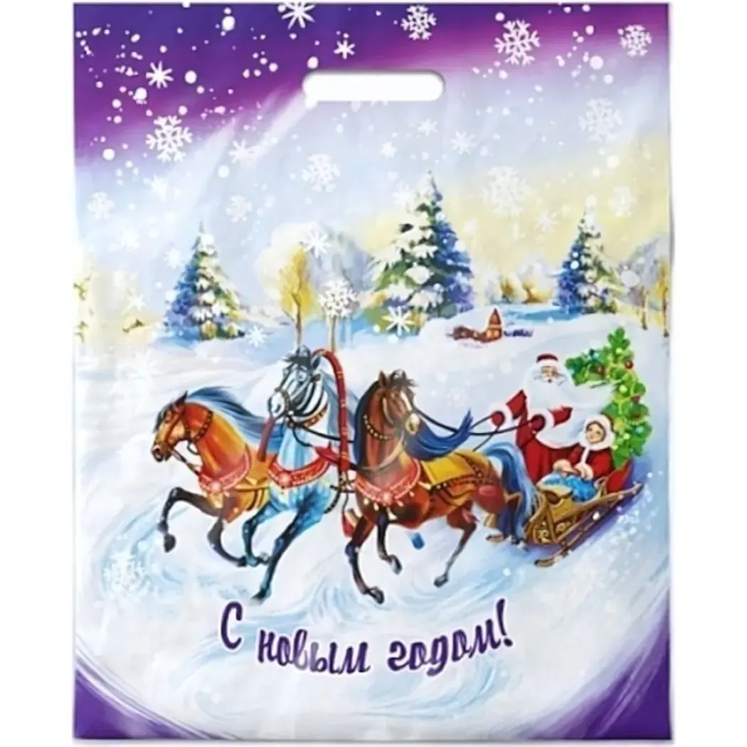 Пакет ПЭ с вырубной ручкой 38х47+6см — это не просто упаковка, а стильный аксессуар для ваших новогодних подарков. С его помощью вы сможете создать атмосферу праздника и порадовать близких. Яркий новогодний дизайн с изображением Деда Мороза и двух лошадей, а также надписью «С новым годом!» сделает ваш подарок незабываемым.