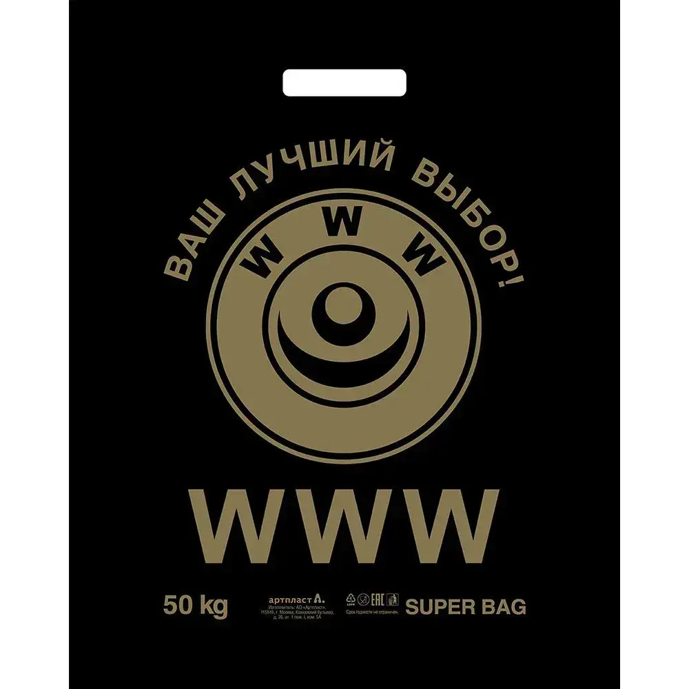 Пакет с вырубной ручкой "WWW" 40+4 см, ПНД, комплект 50 шт, прочный для тяжелых грузов