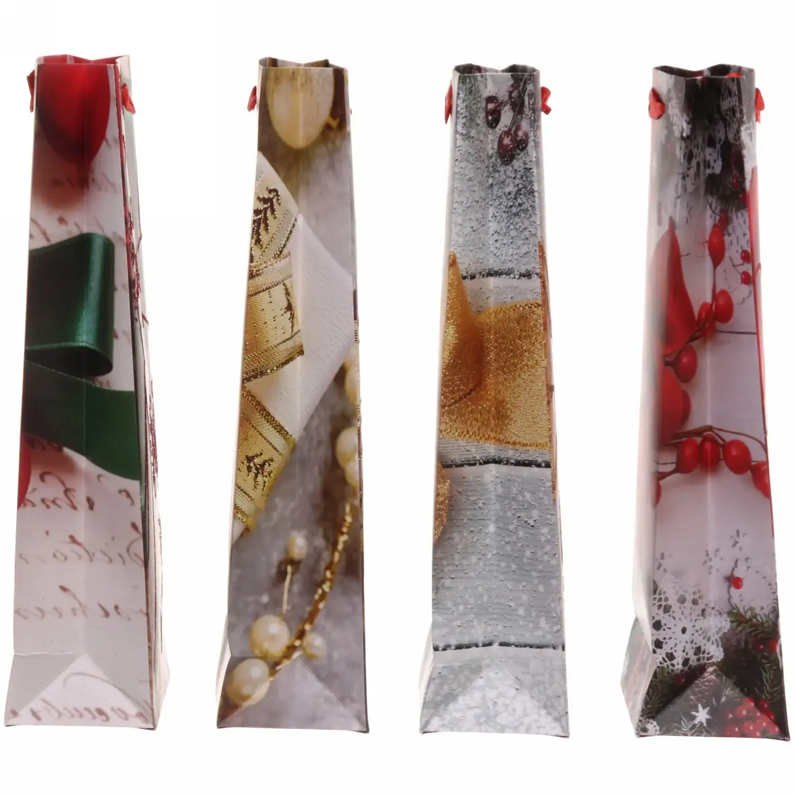 Размеры пакета составляют 12,8х36х8,4 см, что позволяет использовать его для различных бутылок. Материал — бумага, что делает его экологически чистым выбором. Пакет доступен в праздничном миксе цветов, включая красный, золотой и серебряный, что позволяет выбрать наиболее подходящий вариант для вашего подарка.