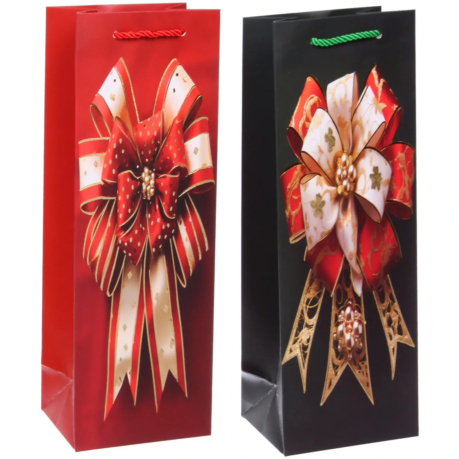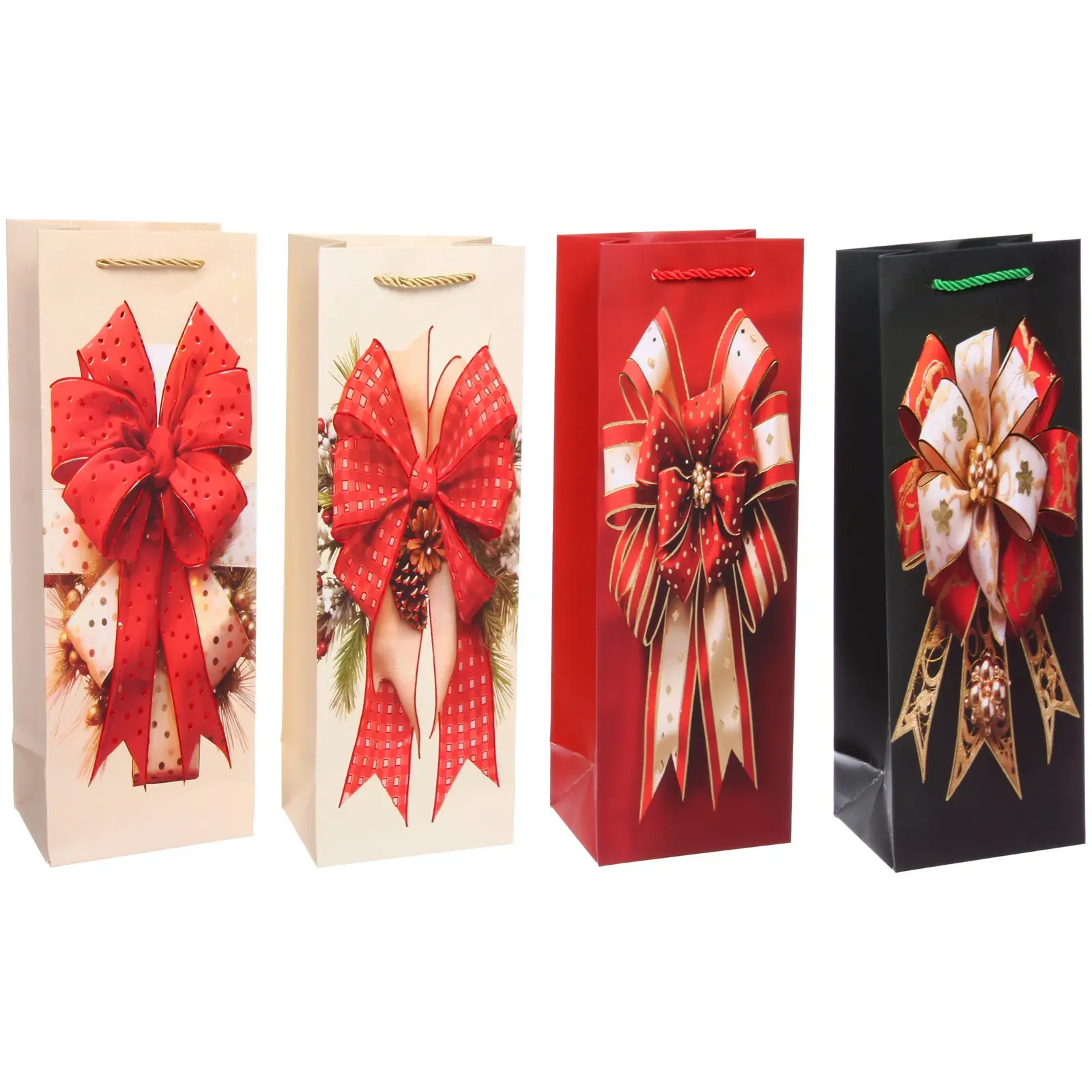Пакет подходит для стандартных стеклянных бутылок и обеспечивает простую упаковку без необходимости в дополнительной обертке. Прочные ручки из шнура или ленты позволяют легко переносить подарок, а долговечный бумажный материал выдерживает вес и сохраняет форму.
