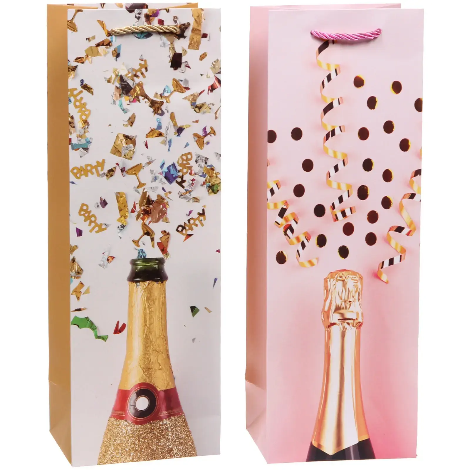 Размеры пакета составляют 12х35х9 см, что позволяет удобно разместить стандартную бутылку шампанского. Микс цветов добавляет разнообразия и позволяет выбрать наиболее подходящий вариант для вашего мероприятия. Пакет выполнен из бумаги, что делает его легким и экологически чистым выбором.