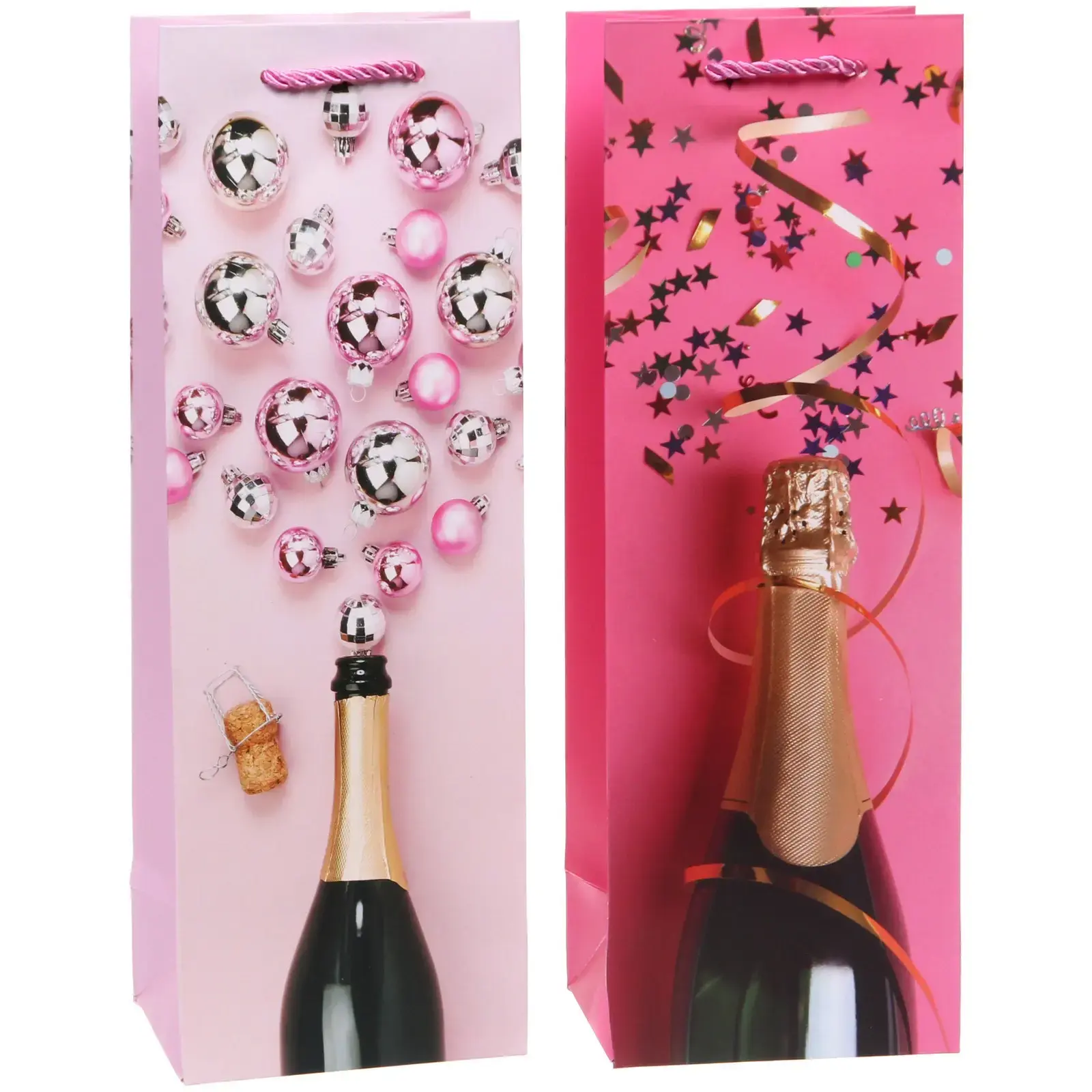 Пакет предназначен для удобной упаковки бутылок шампанского или других напитков. Он выполнен из качественной бумаги, что обеспечивает надежность и долговечность. Упаковка имеет удобные ручки, что позволяет легко переносить ее, не беспокоясь о содержимом.