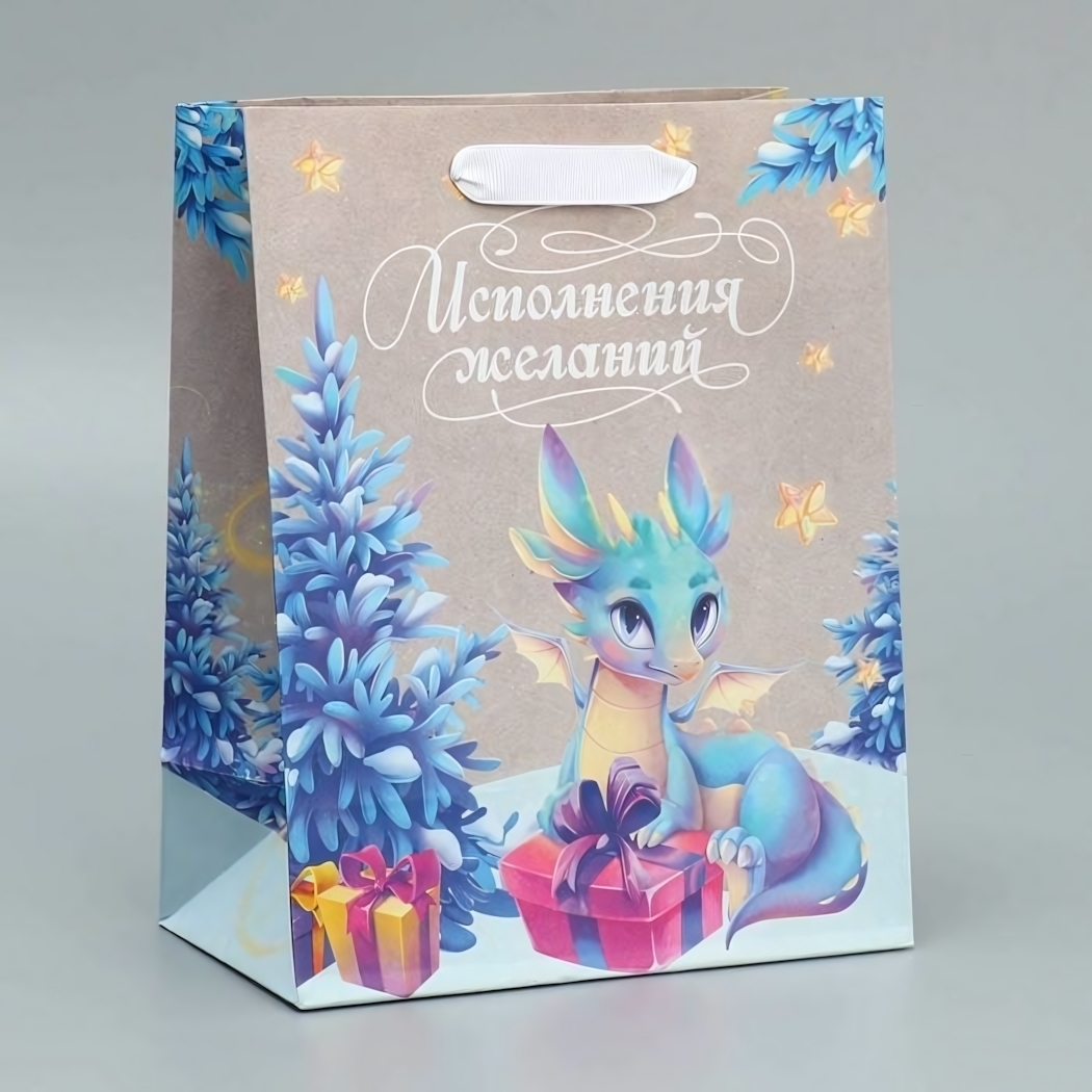 Подарочный пакет "Дракон в лесу", 18x23x10 см, для исполнения желаний