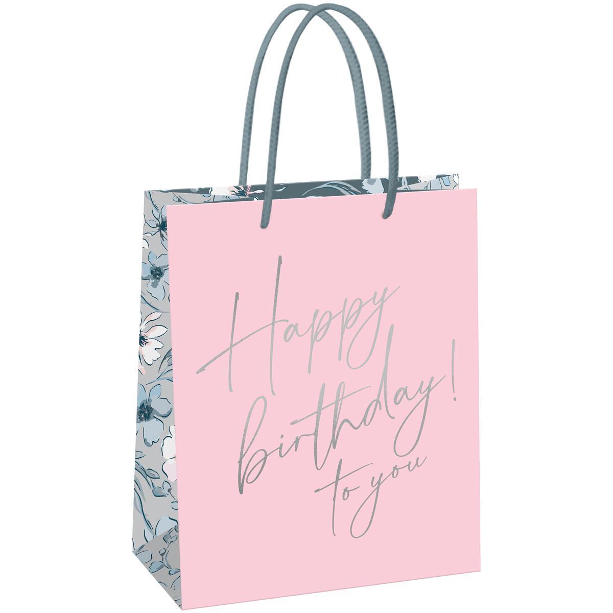 Пакет подарочный MESHU "Happiness", 18х23х10 см, розовый с днем рождения, картон