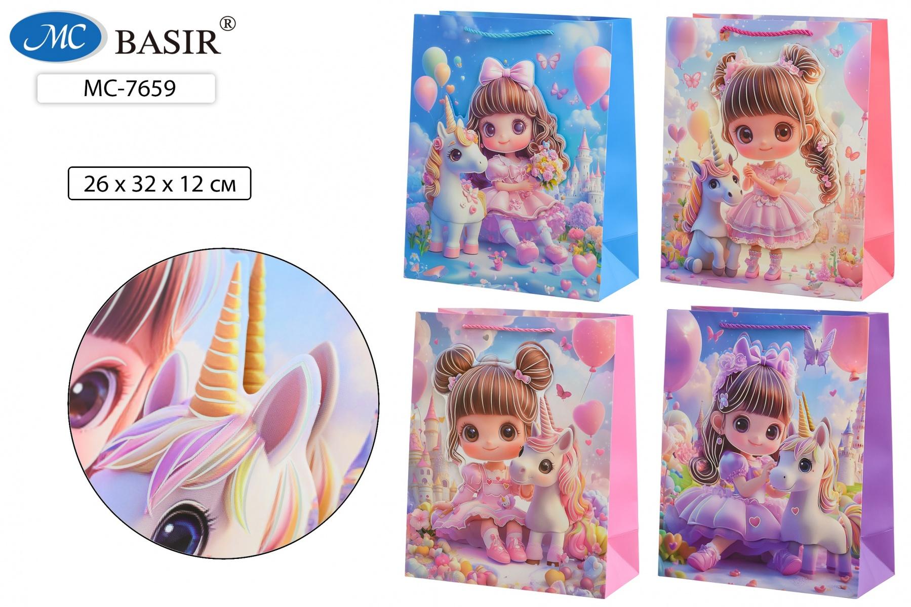 Главная особенность данной модели — эффектная объёмная аппликация, которая делает изображение живым и тактильно приятным. Детализированное голографическое тиснение красиво переливается при свете, добавляя упаковке праздничного сияния. Изображение милой девочки и сказочного единорога в нежных пастельных тонах обязательно вызовет восторг у маленькой получательницы.