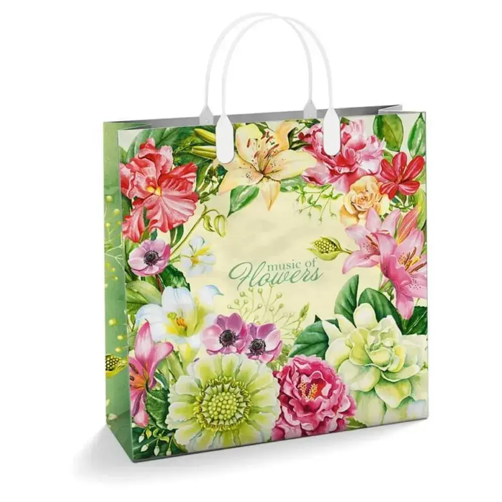 Подарочный пакет «Музыка цветов» 30х10 см, мягкий пластик, ручки-шнурки, цветочный дизайн