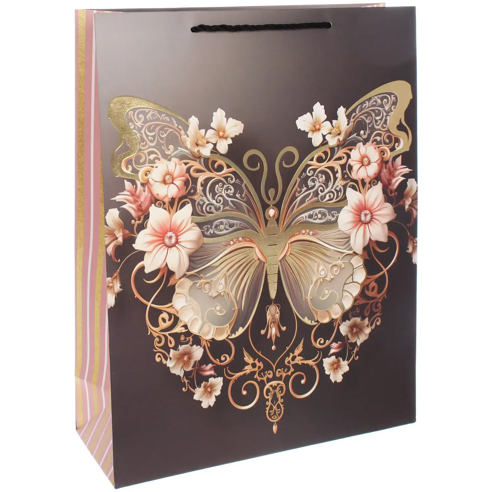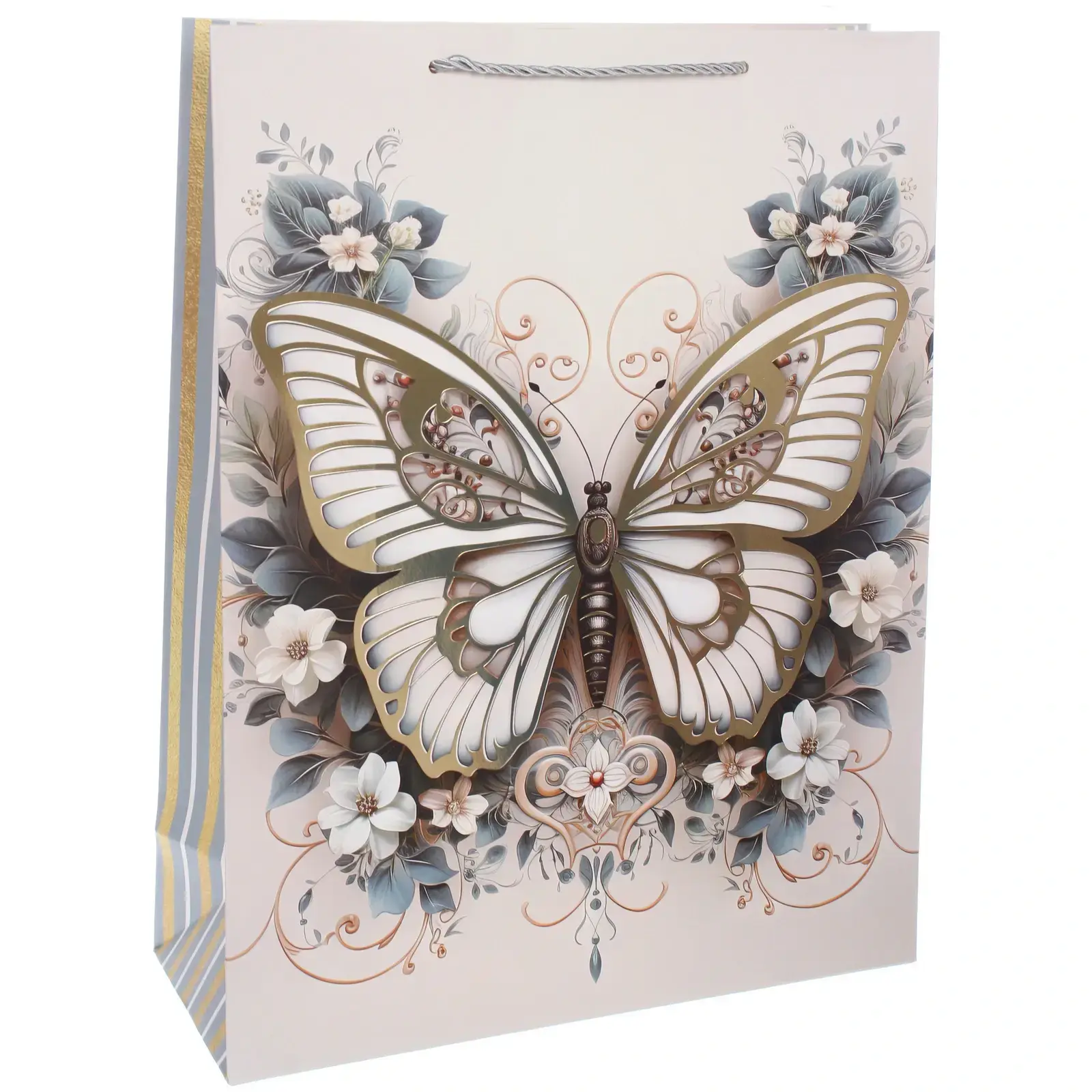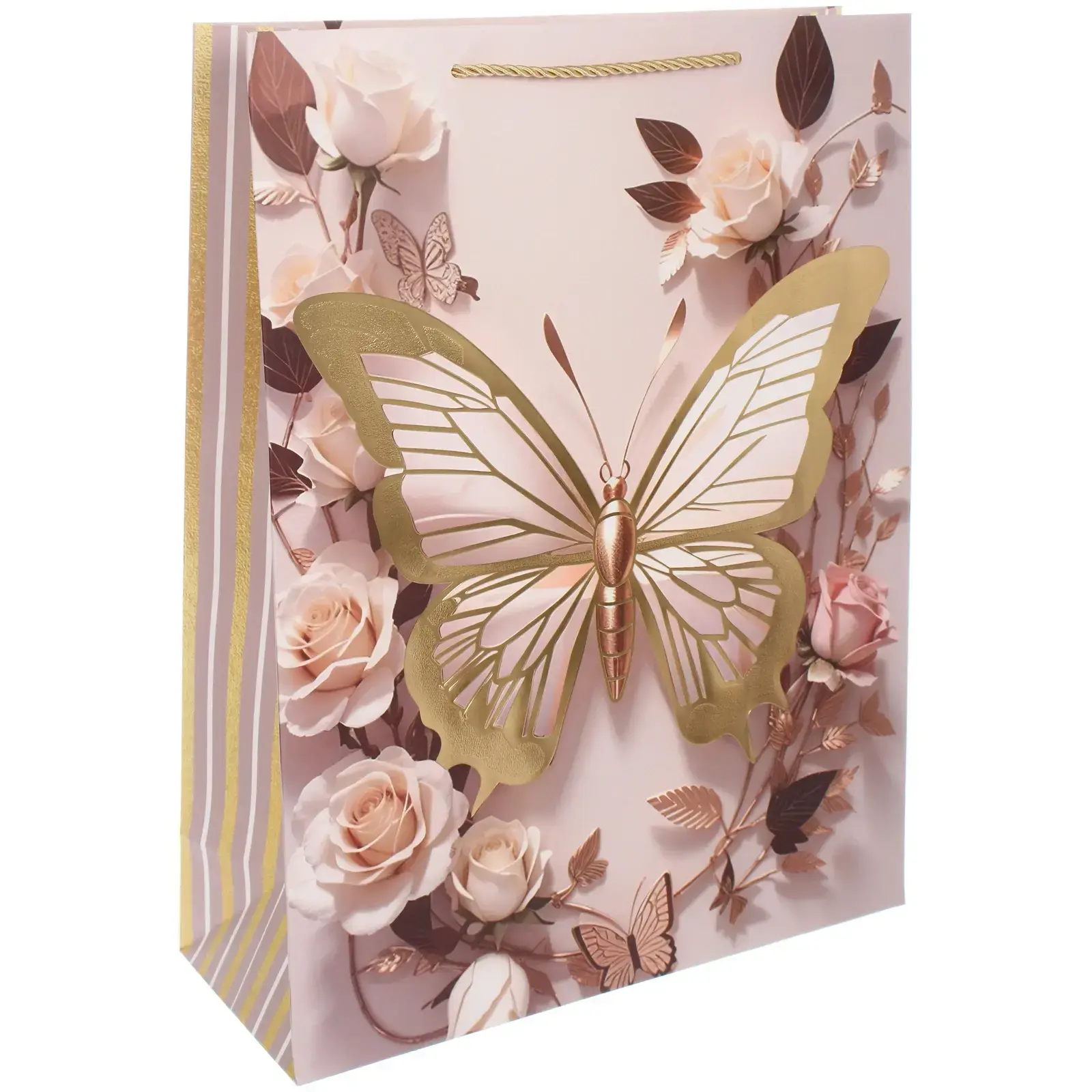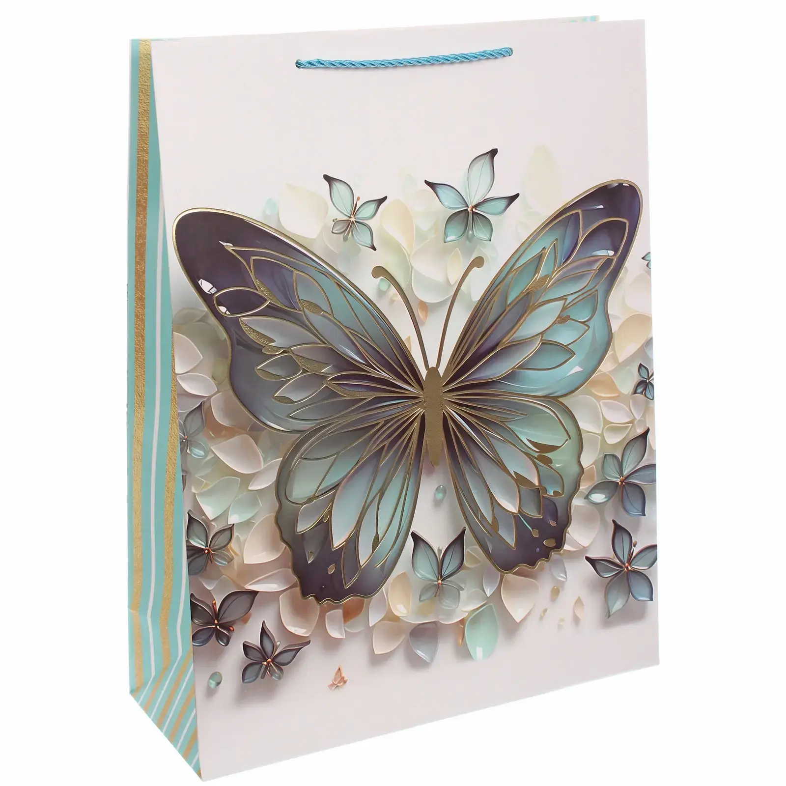 Подарочный пакет 'Бабочка' создан для тех, кто ценит элегантность и внимание к деталям. Благодаря стильным дизайнам с объемными бабочками и цветочными мотивами, ваш подарок станет еще более запоминающимся.