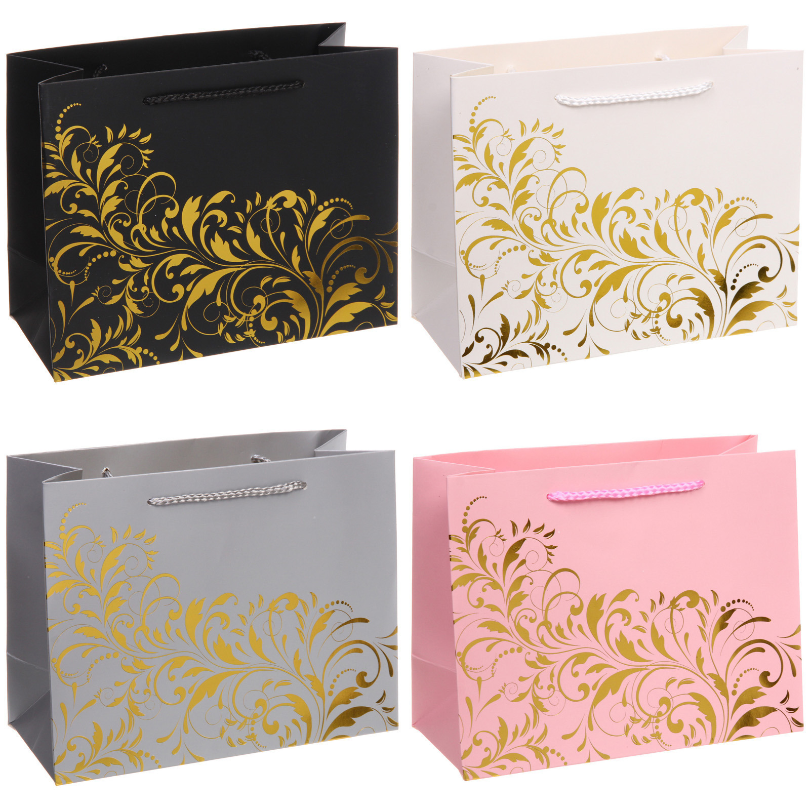 Пакет подарочный «Блестящий орнамент» выделяется среди других упаковок благодаря своему уникальному дизайну с золотистыми завитками. Он доступен в нескольких цветах: черном, белом, сером и розовом, что позволяет выбрать именно тот вариант, который подойдет к вашему подарку. Такой пакет не только украсит ваш подарок, но и создаст атмосферу праздника.