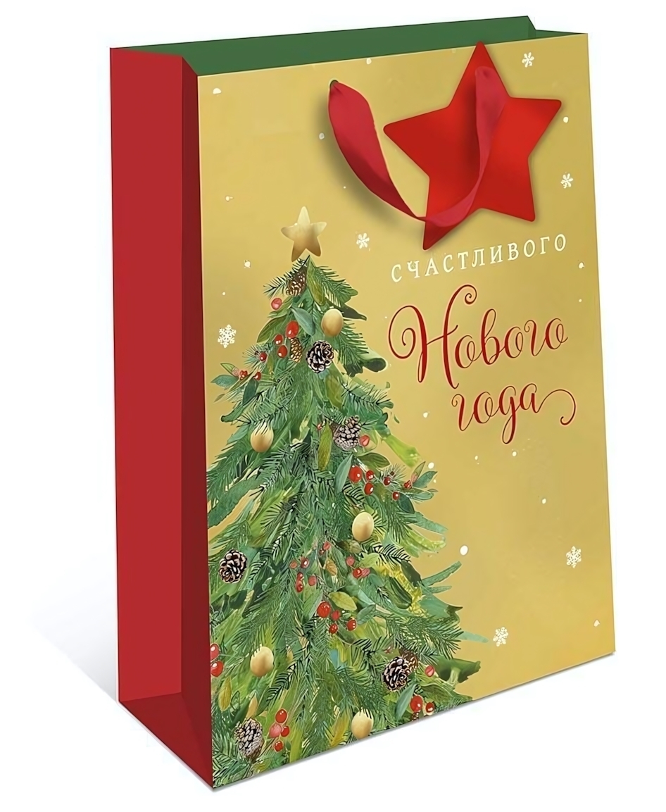 Этот подарочный пакет идеально подходит для упаковки новогодних подарков любого типа – от сладостей и игрушек до книг и сувениров. Он станет отличным выбором для тех, кто ценит качество и внимание к деталям. Подарите своим близким не только подарок, но и праздничное настроение!