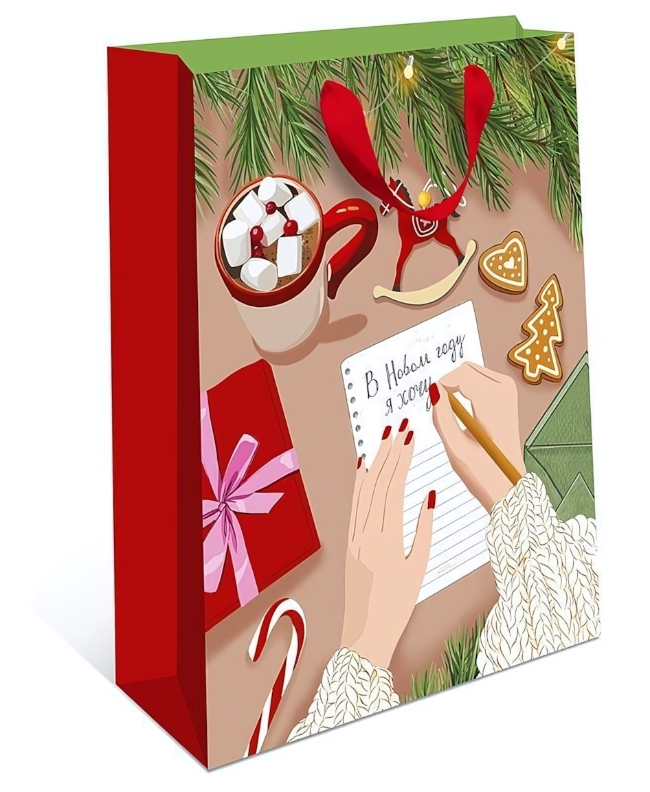 Подарочный пакет с праздничным дизайном создан, чтобы подчеркнуть ценность вашего внимания. Идеальный вариант для упаковки презентов родным, коллегам или друзьям в преддверии зимних праздников.