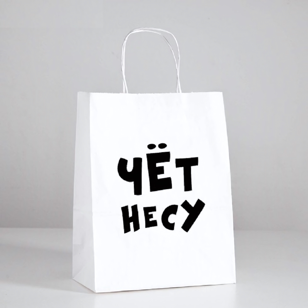 Бумажный пакет с лаконичной надписью «Чёт несу» — идеальное решение для деликатных подарков, где важна конфиденциальность и эстетика. Прочная конструкция с удобными ручками сохранит содержимое в безопасности, а нейтральный дизайн подчеркнёт изысканный вкус дарителя.