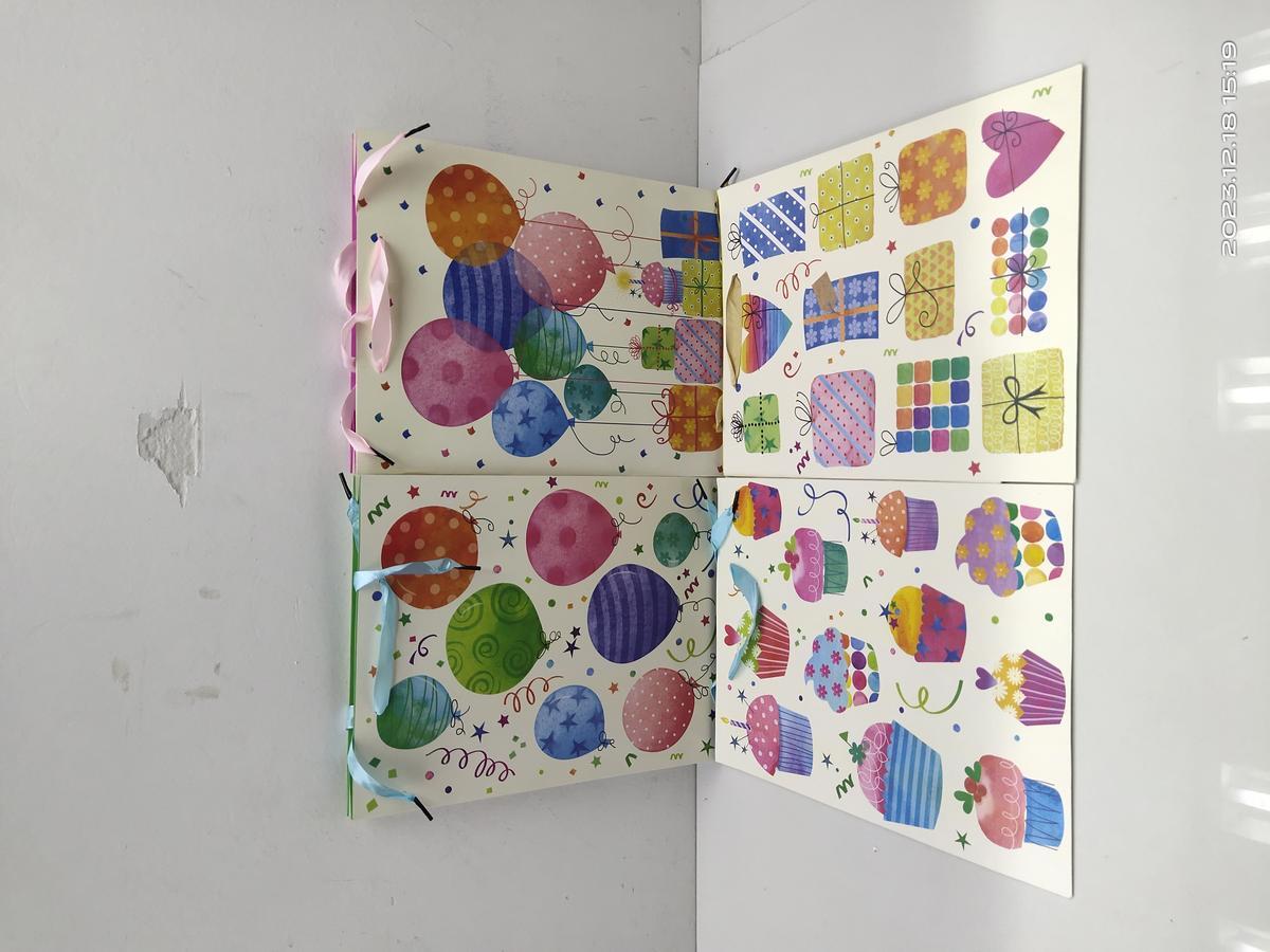 - Универсальный дизайн: 4 варианта изображений на выбор – шарики, подарки, капкейки и подарочные коробки с шарами.
