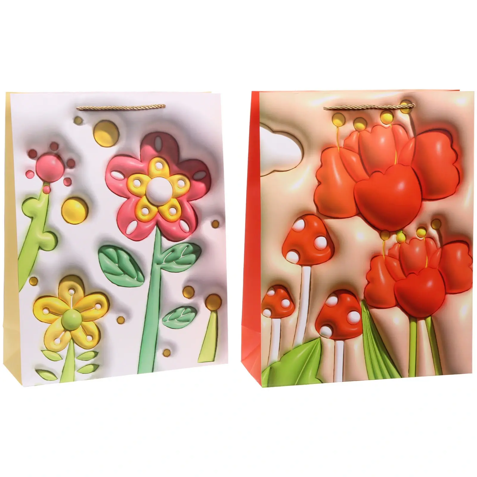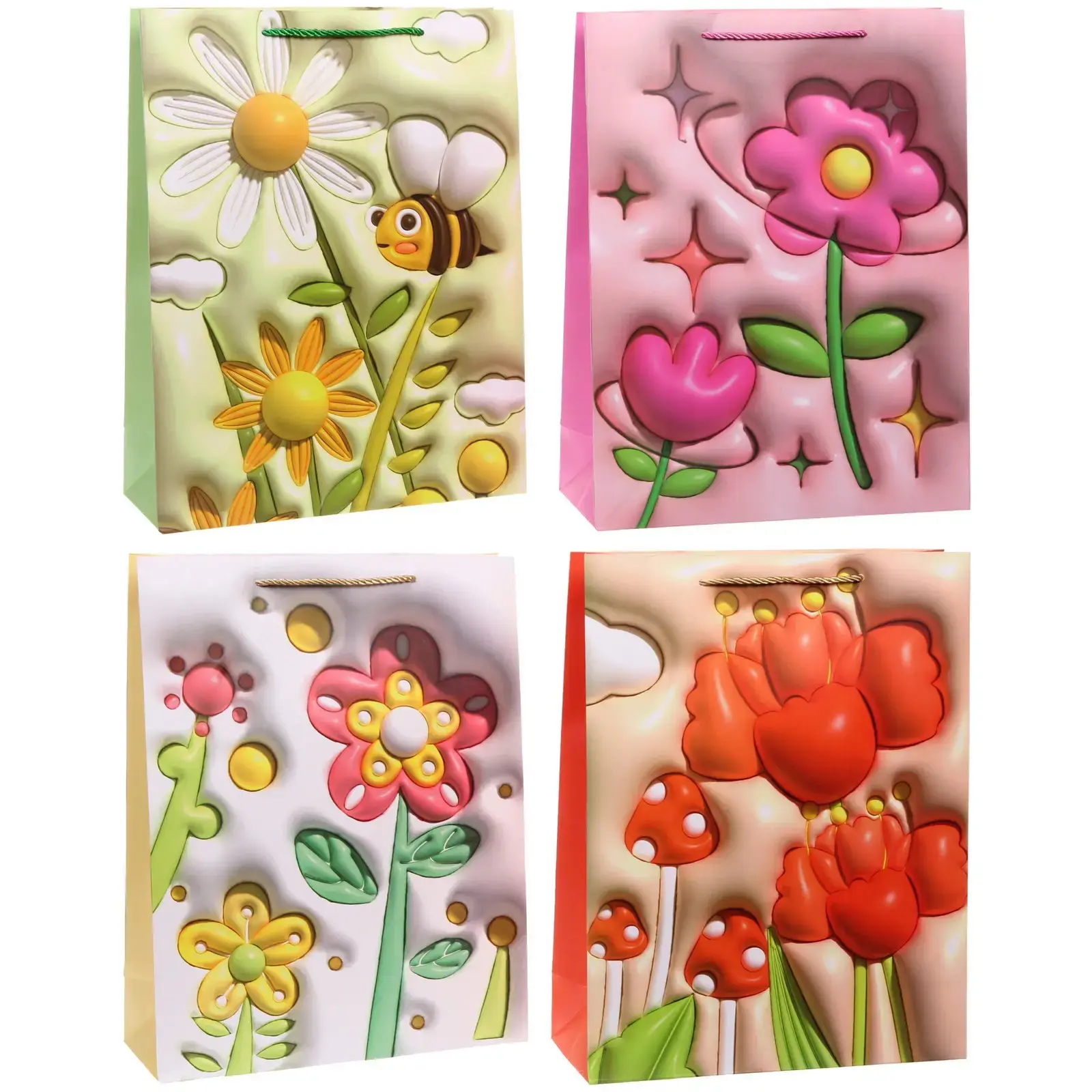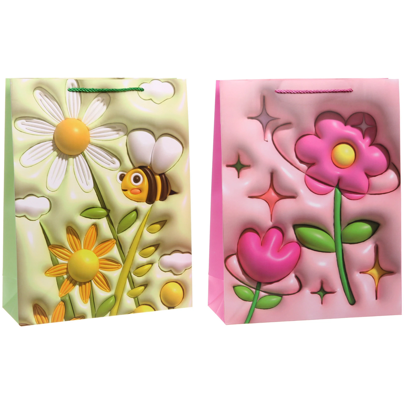 Подарочный пакет с тематикой «Детство» превратит любой презент в праздничное событие. Объемный рельефный дизайн с цветами и насекомыми добавит волшебства даже самому простому подарку.