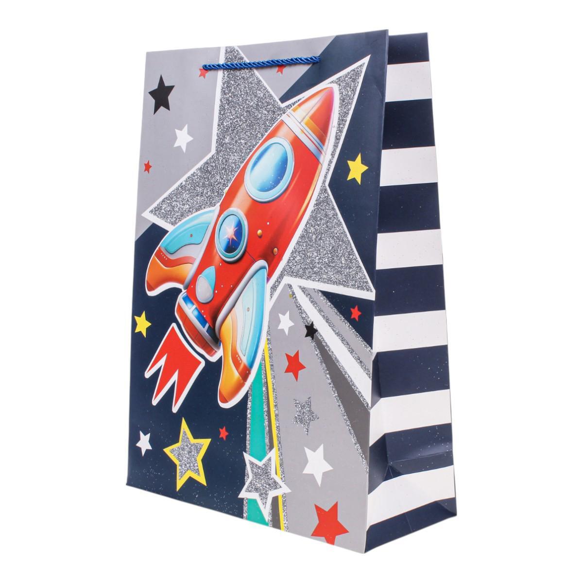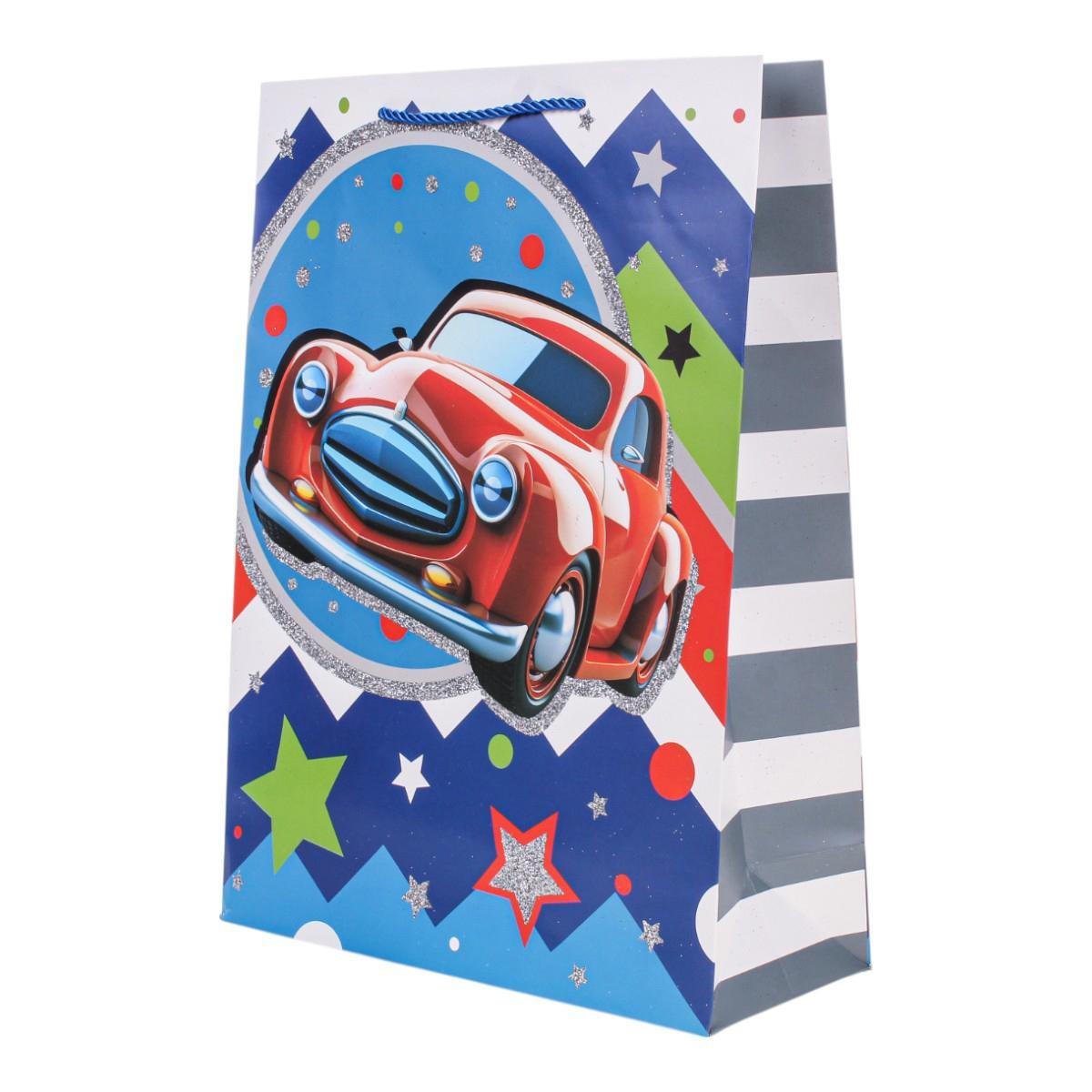 Пакет имеет размеры 44х31х12 см, что позволяет помещать в него различные подарки, от игрушек до книг. Удобные веревочные ручки из полипропилена обеспечивают комфорт при переноске, а блестящие элементы с серебристым глиттером придают ему праздничный вид. В ассортименте представлены 4 уникальных дизайна: ракета, спортивный автомобиль, самолет и еще один автомобиль, что позволяет выбрать наиболее подходящий вариант для любого случая.