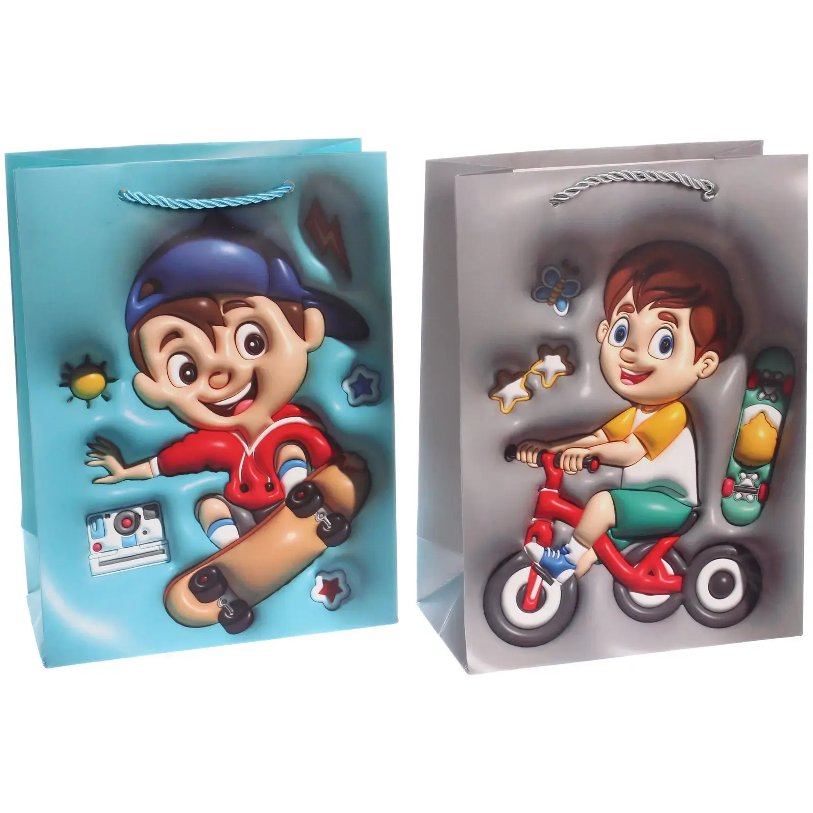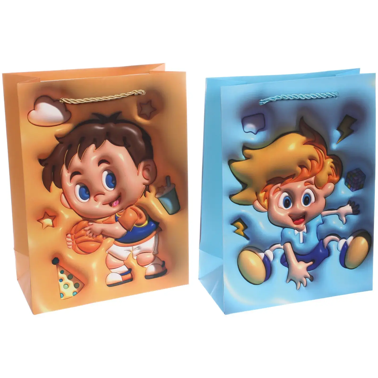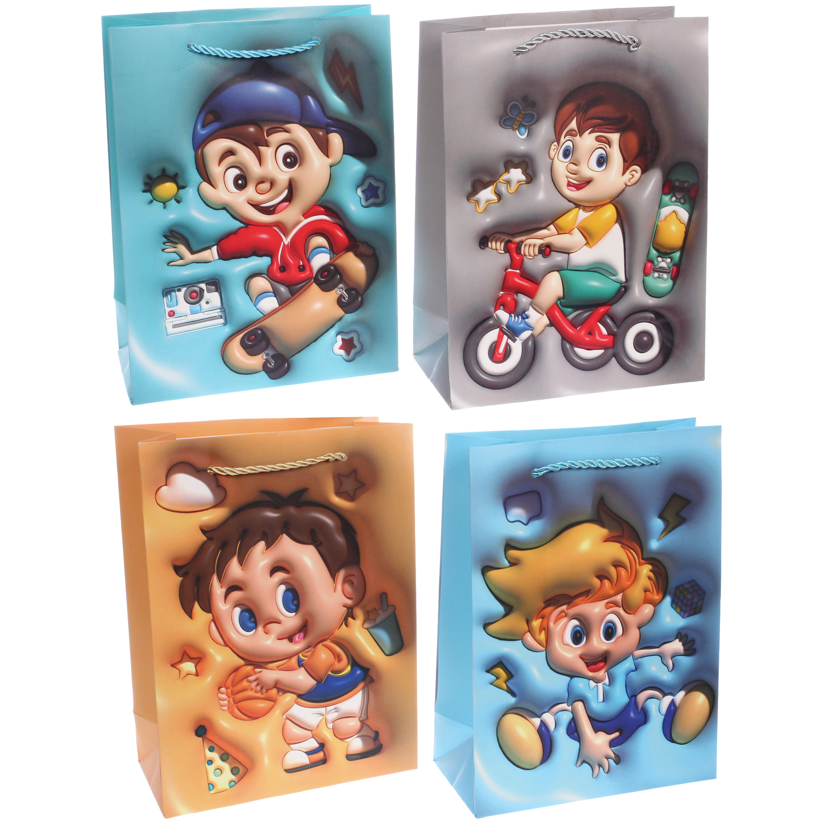 Размеры пакета составляют 18 см в ширину, 24 см в высоту и 8.5 см в глубину, что позволяет упаковать множество различных подарков. Материал — бумага, что делает его экологически чистым выбором. Пакет доступен в нескольких ярких цветах, что позволяет выбрать именно тот, который понравится вашему ребенку.