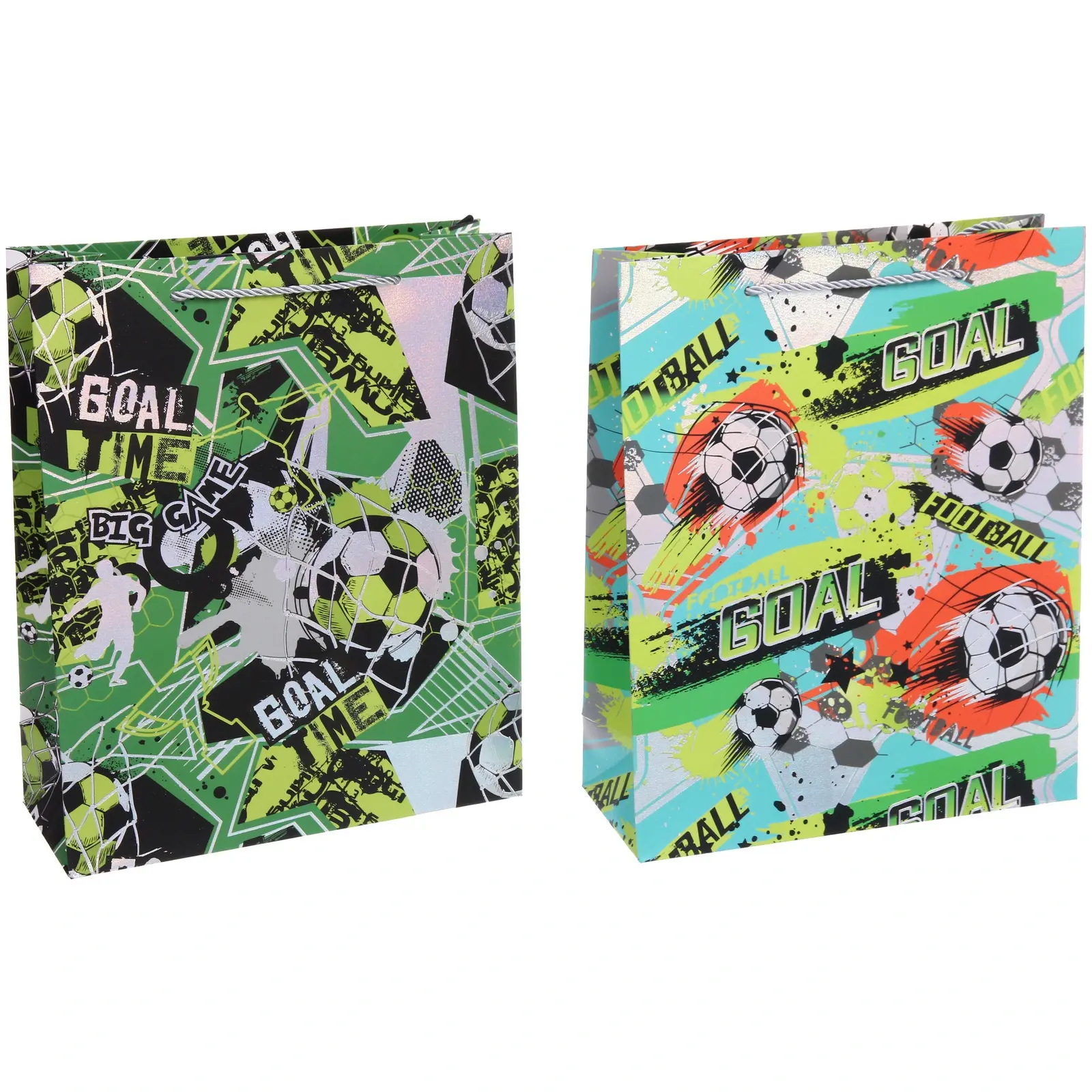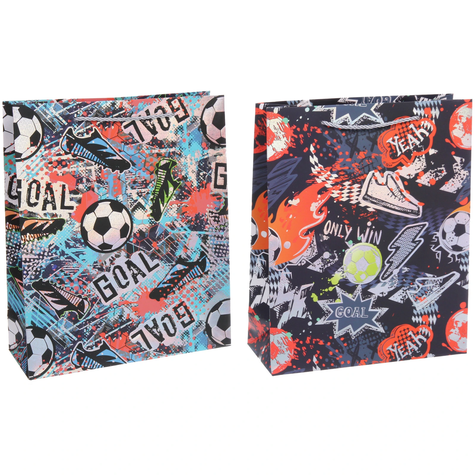 Пакет «GOAL» выполнен в тематике футбола, что делает его особенно привлекательным для поклонников этого вида спорта. Яркие, динамичные принты с изображениями футбольных мячей, надписями «GOAL», «BIG GAME», «ONLY WIN» и элементами граффити погружают в атмосферу азарта и победы. Разнообразие дизайнов, представленных на изображениях (зеленый, голубой, красный, черный), позволяет подобрать вариант под любое настроение и стиль, хотя конкретный цвет будет определен случайным образом при заказе.