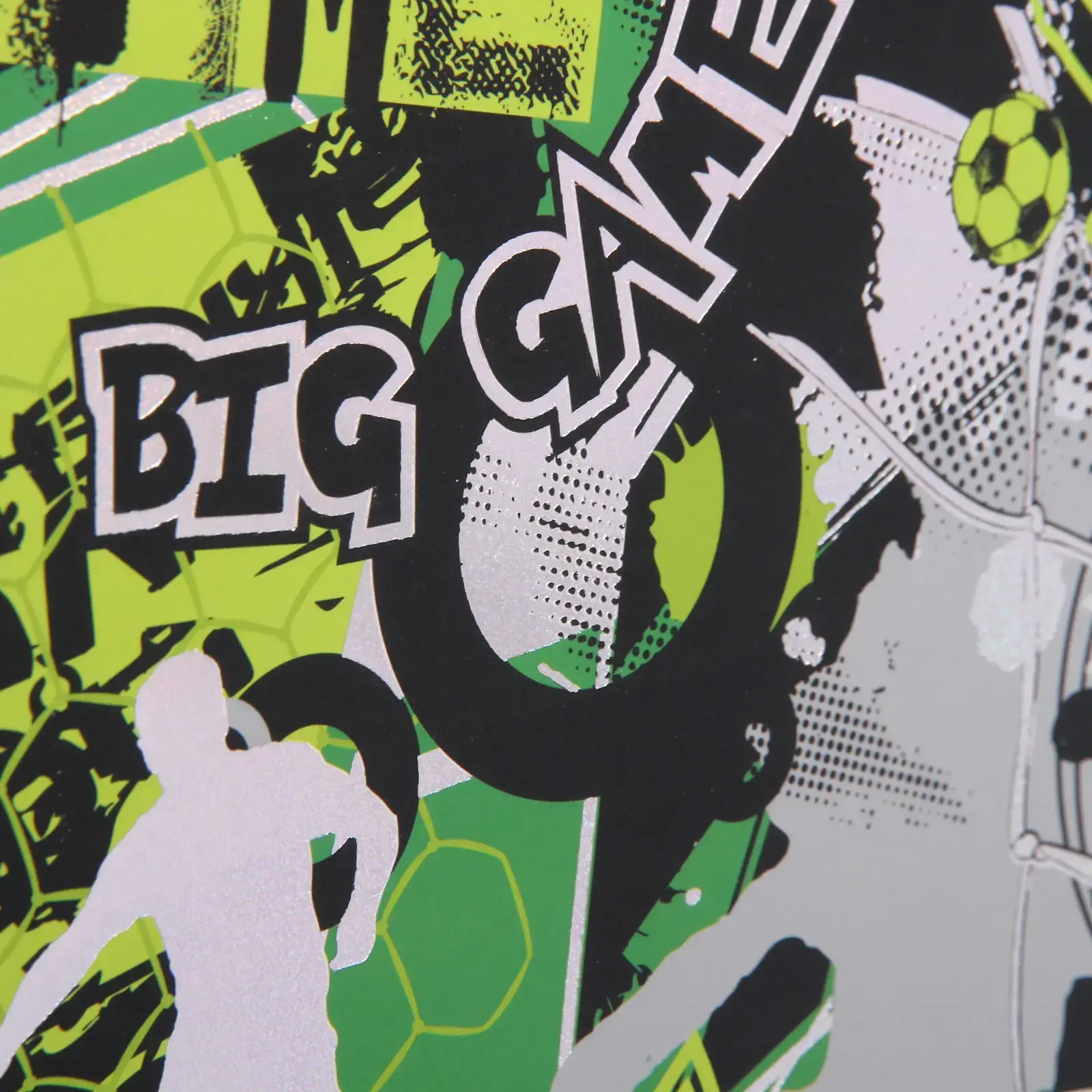 - Дизайн: Яркая футбольная тематика в стиле граффити – для ярких впечатлений.