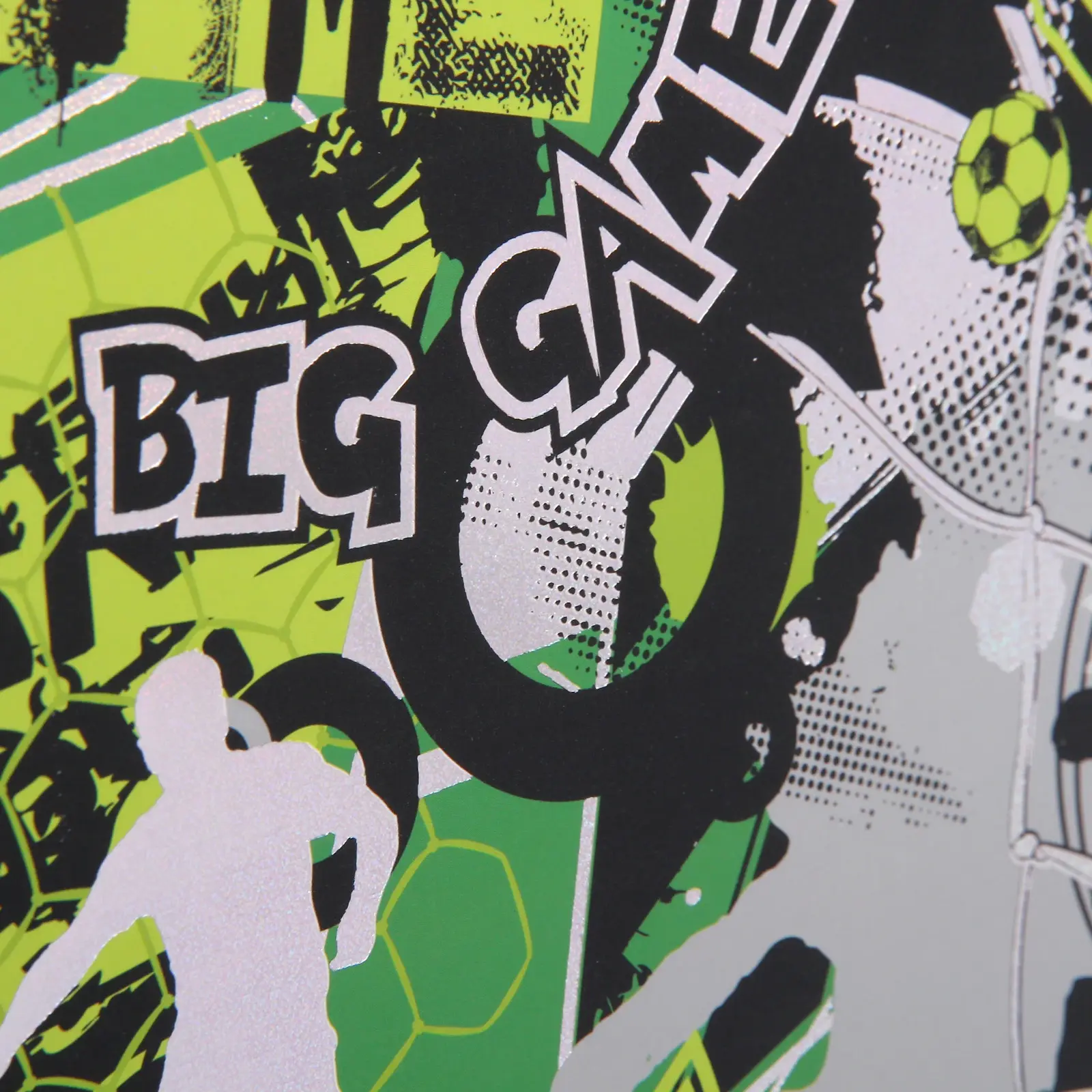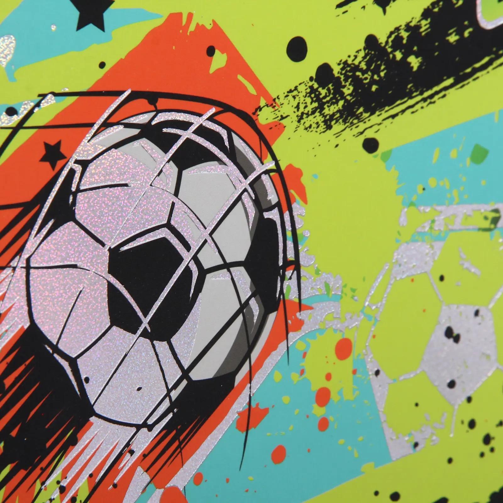 - Яркий дизайн: Футбольная тематика с эффектными надписями и графикой, которая понравится каждому поклоннику спорта.