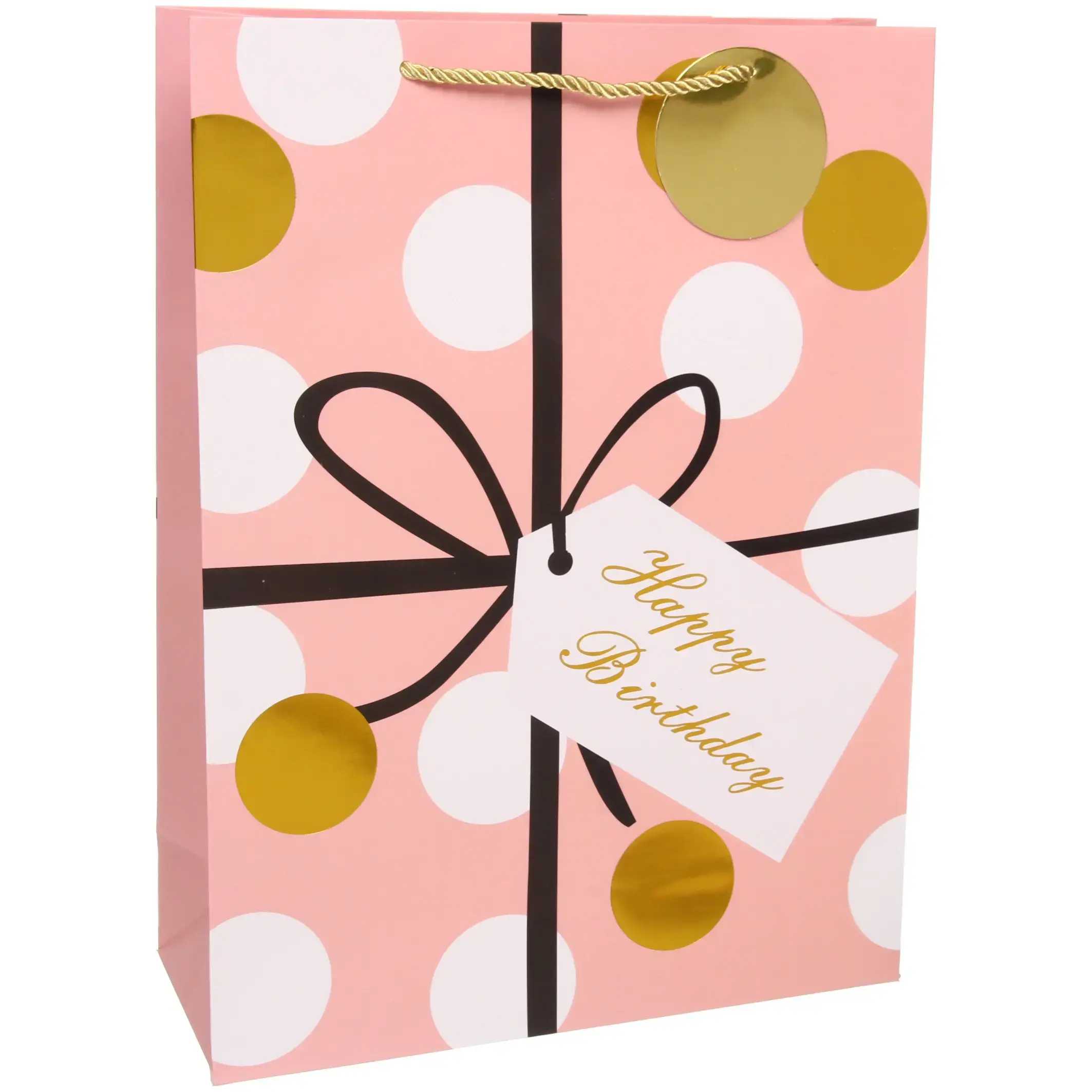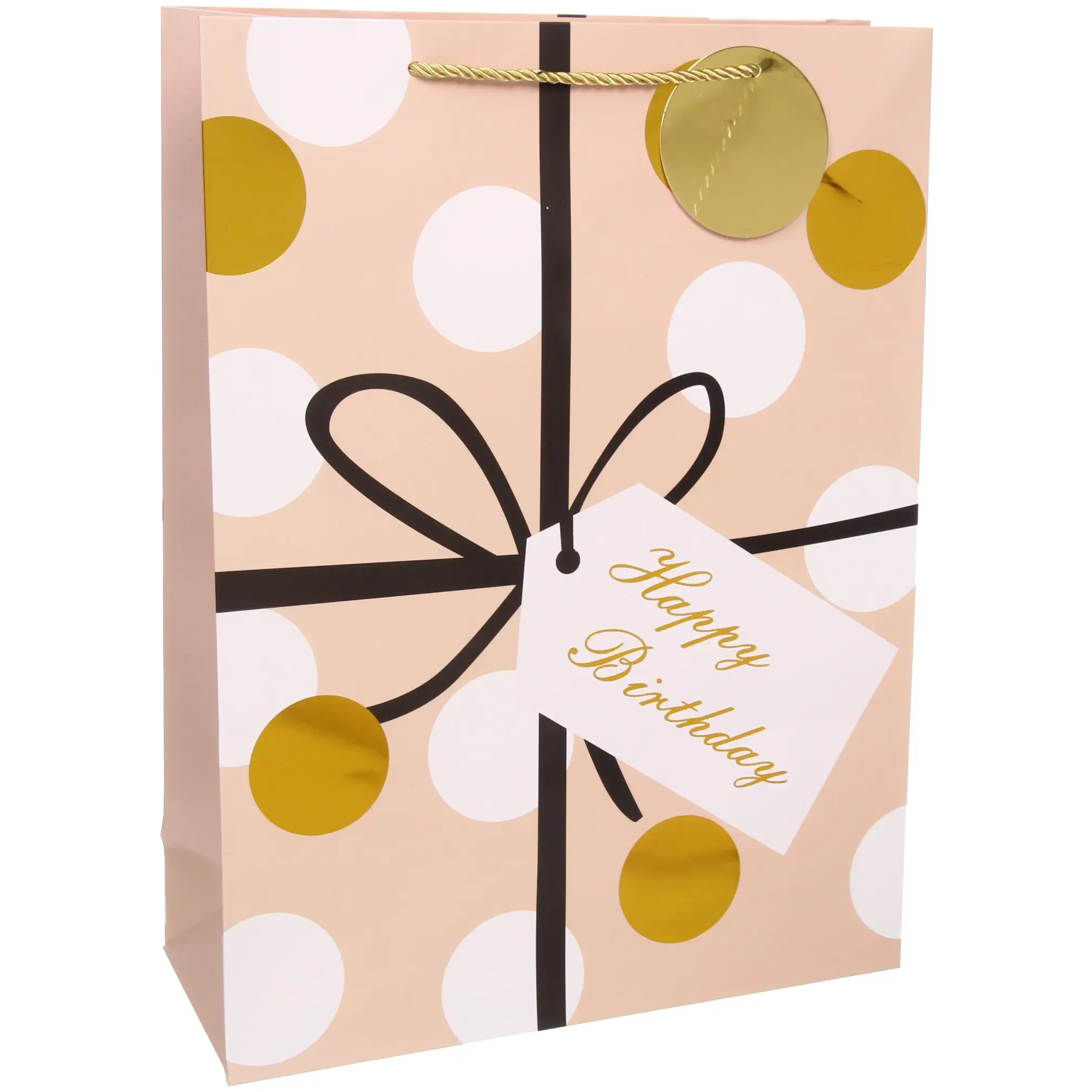 Пакет подарочный «Happy» — это не просто упаковка, а настоящее украшение для вашего подарка. С его помощью вы сможете создать атмосферу праздника и радости, которая будет сопровождать вашего близкого человека в его особенный день. Яркий и стильный дизайн пакета, выполненный в пастельных тонах с белыми и золотыми кругами, привлекает внимание и создает настроение. Этот пакет станет отличным дополнением к любому подарку на день рождения.