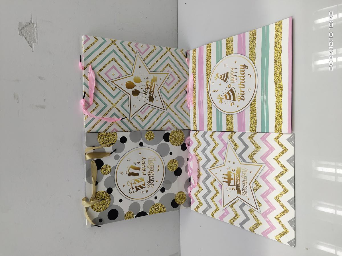 - Надежность: Изготовлен из плотного мелованного картона, выдержит вес подарка и сохранит его в целости.