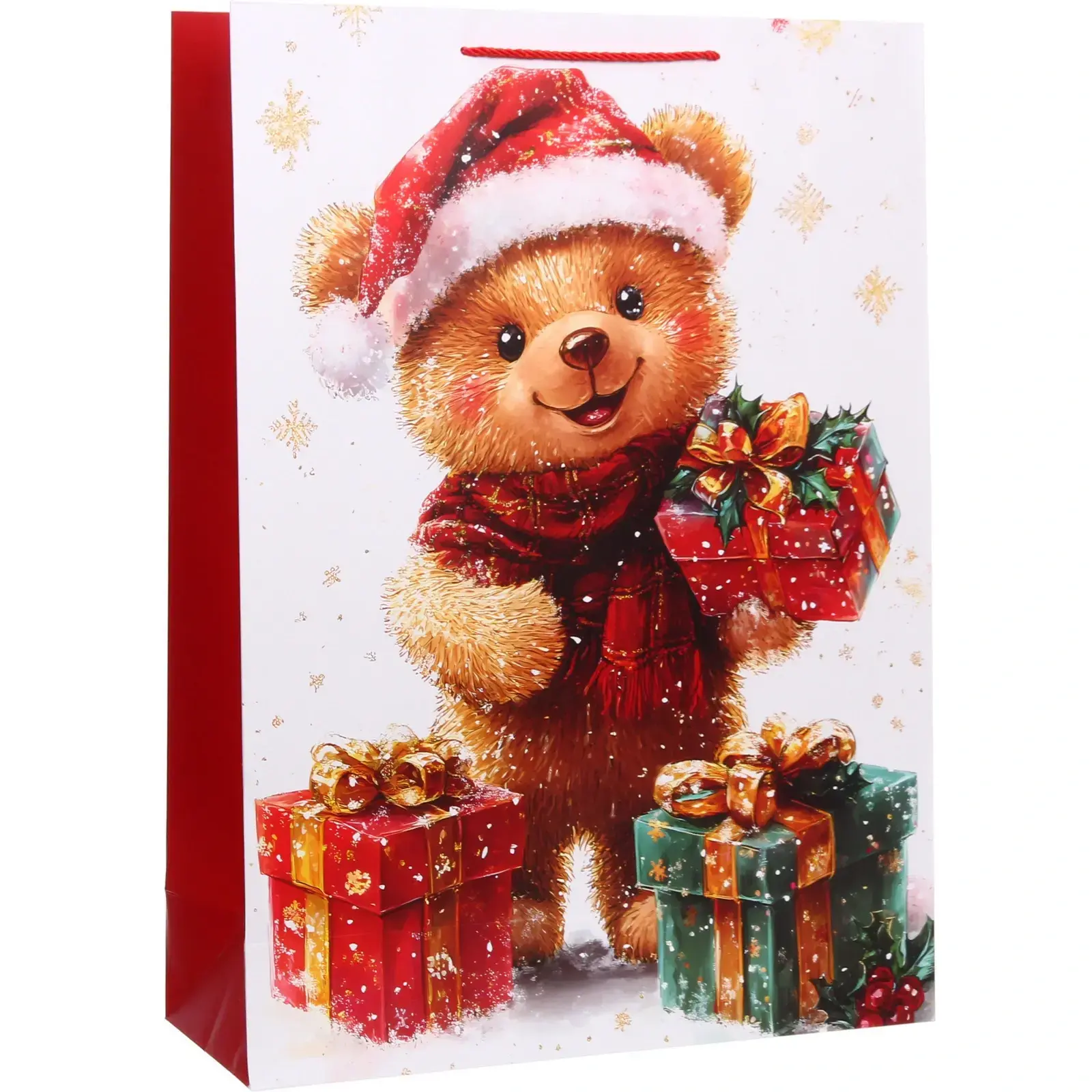 Пакет подарочный 'Honey Bear' 1шт., 40*55см, новогодний дизайн, разноцветный принт