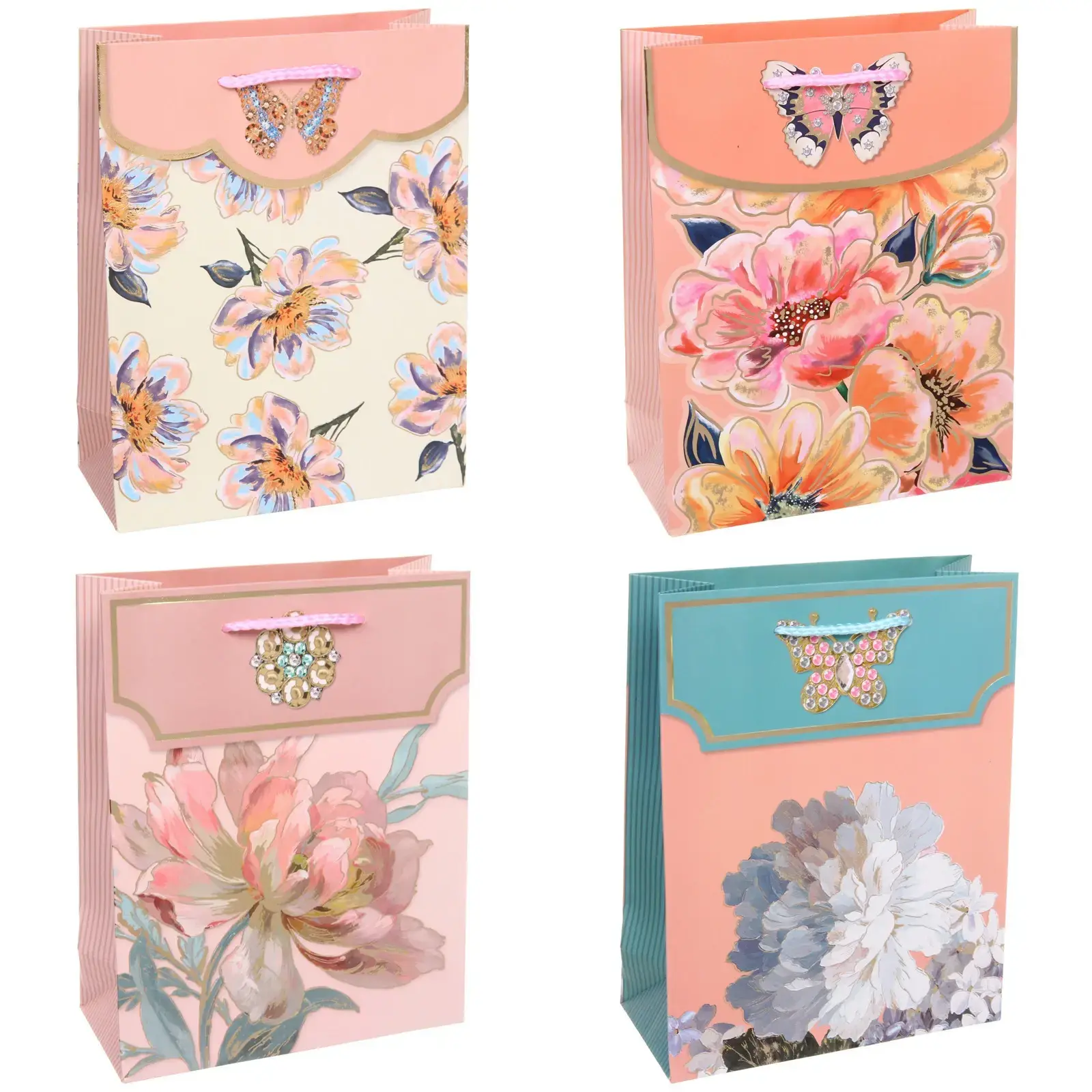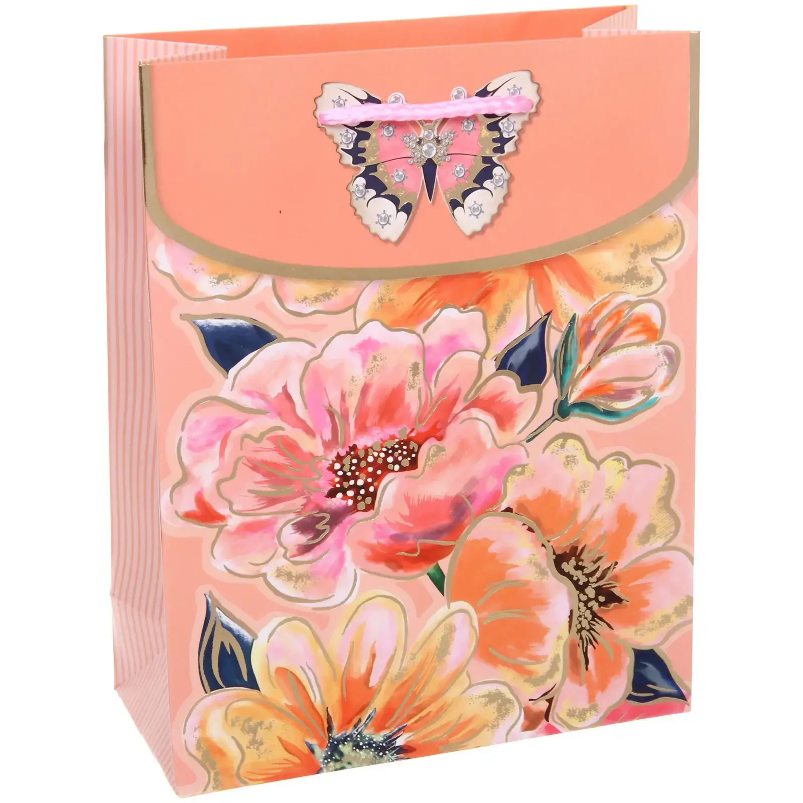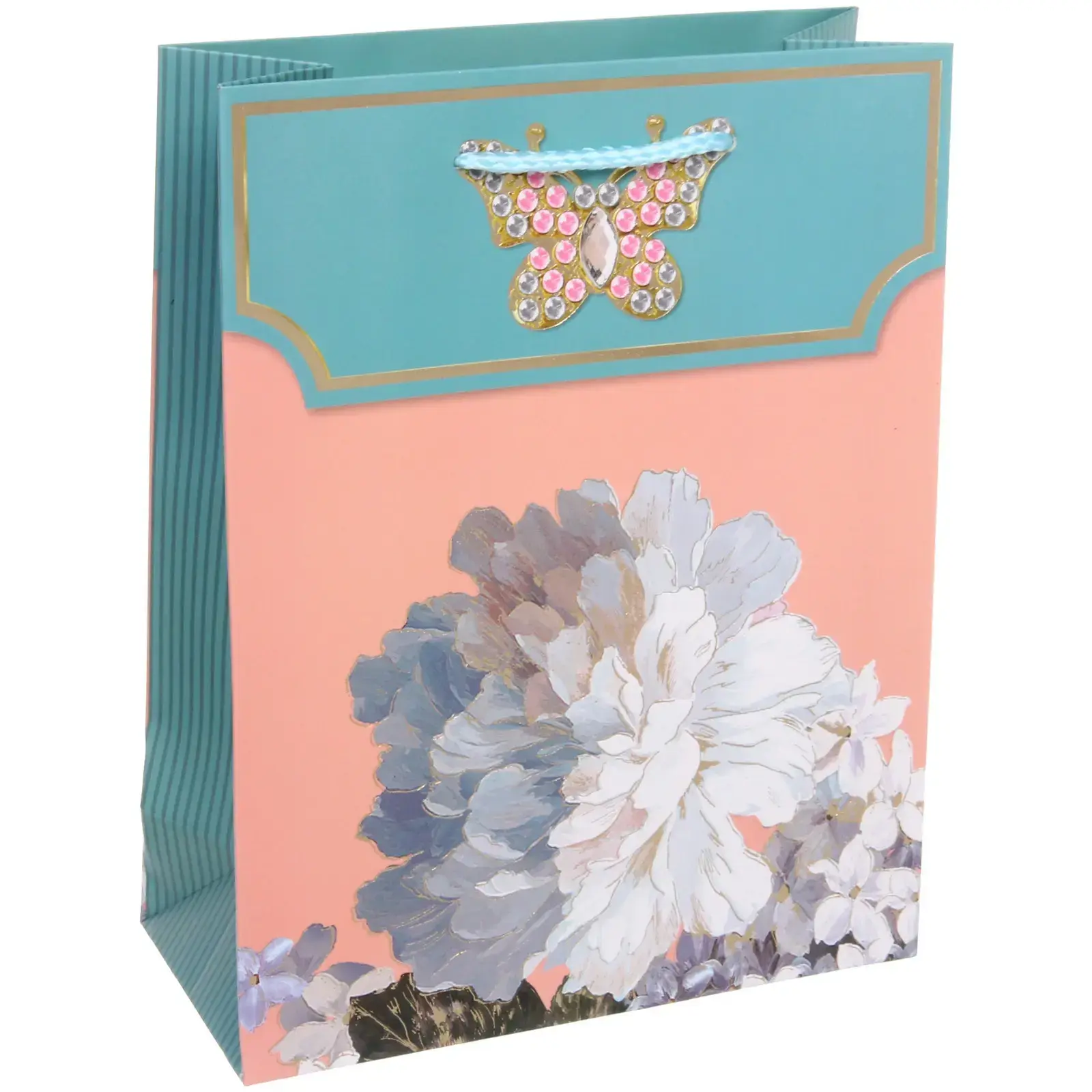 Выбирая пакет «Изящные цветы», вы получаете не только красивую упаковку, но и практичное решение для подарков. Его стильный дизайн с цветами и декоративными элементами, такими как бабочки и стразы, придает ему уникальность и привлекательность. Пакет легко комбинируется с другими элементами декора, что позволяет создать гармоничный образ для вашего подарка.