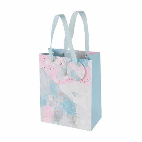 В комплекте с пакетом идет открытка для подписи, что избавляет от необходимости искать отдельную карточку. Круглый ярлык с тем же абстрактным рисунком, что и на лицевой стороне пакета, добавляет завершенности образу.