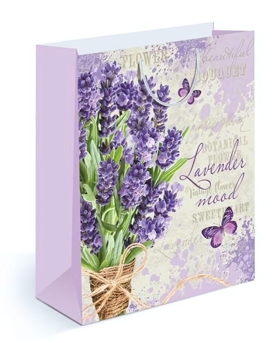 Подарочный пакет формата L «лаванда» помогает красиво и аккуратно оформить презент без лишних усилий. Нежный фон с изображением букета лаванды и декоративными элементами придает упаковке утонченный и теплый характер, создавая приятное впечатление уже с первого взгляда. Такой пакет подчеркивает внимание к деталям и делает подарок более запоминающимся.