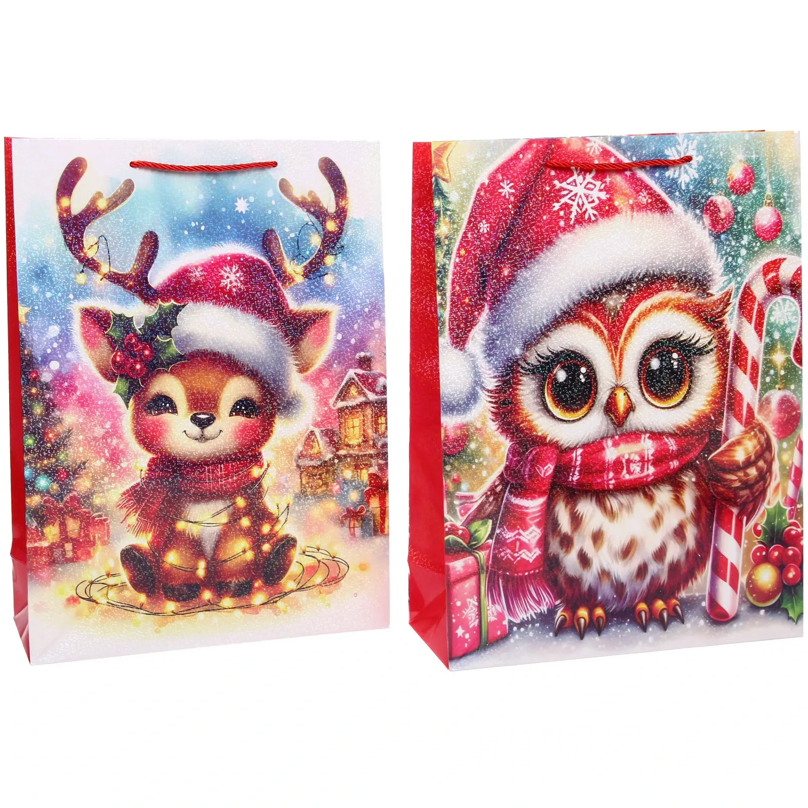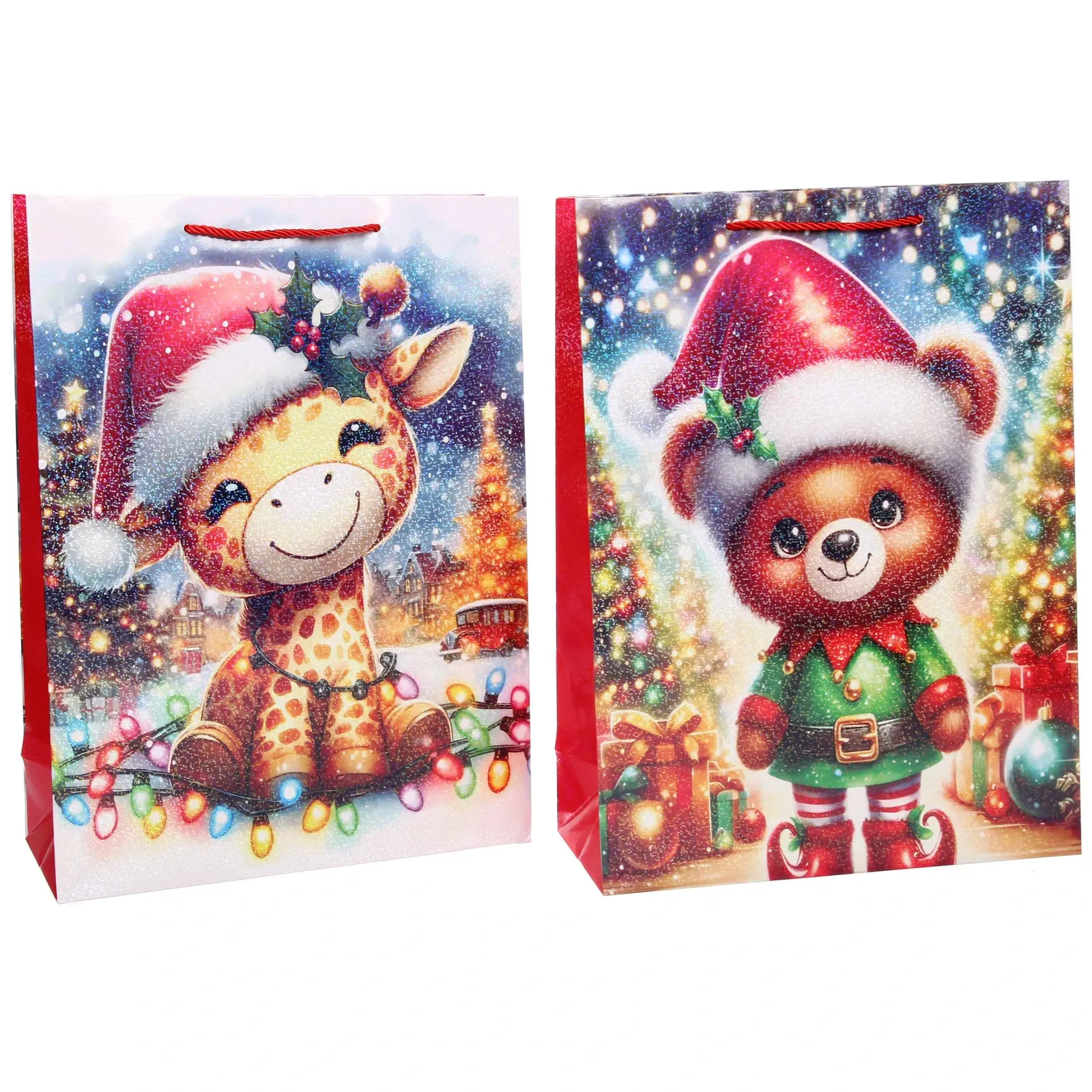 Создайте праздничное настроение с подарочным пакетом 'Лесные жители'. Его красочные принты с оленями, медведями и другими животными моментально привлекут внимание получателя.