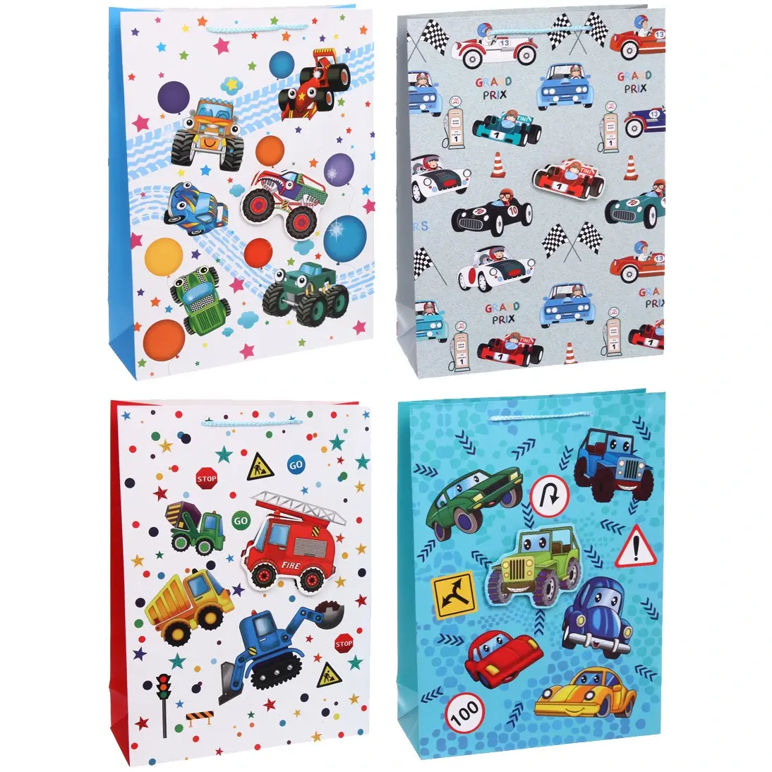 Каждый пакет украшен уникальными мультяшными изображениями, полными жизни и позитива. От гоночных машин и строительной техники до абстрактных узоров — каждый дизайн создан, чтобы поднять настроение и подчеркнуть индивидуальность вашего поздравления. Прозрачный материал пакета позволяет рассмотреть содержимое, добавляя интриги, а яркие краски и детали делают его по-настоящему привлекательным.
