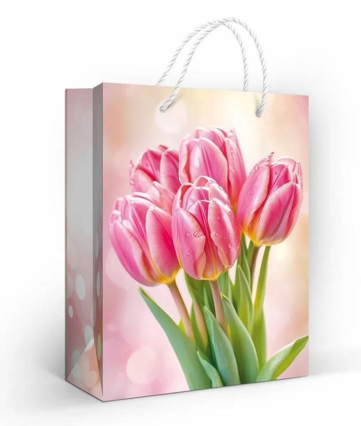 Подарите своим близким радость с помощью стильного подарочного пакета "Розовый букет". Этот пакет станет идеальным решением для упаковки цветов, подарков и сюрпризов на любой праздник. Его светло-розовый цвет и изысканный дизайн с изображением розовых тюльпанов создают атмосферу праздника и нежности.