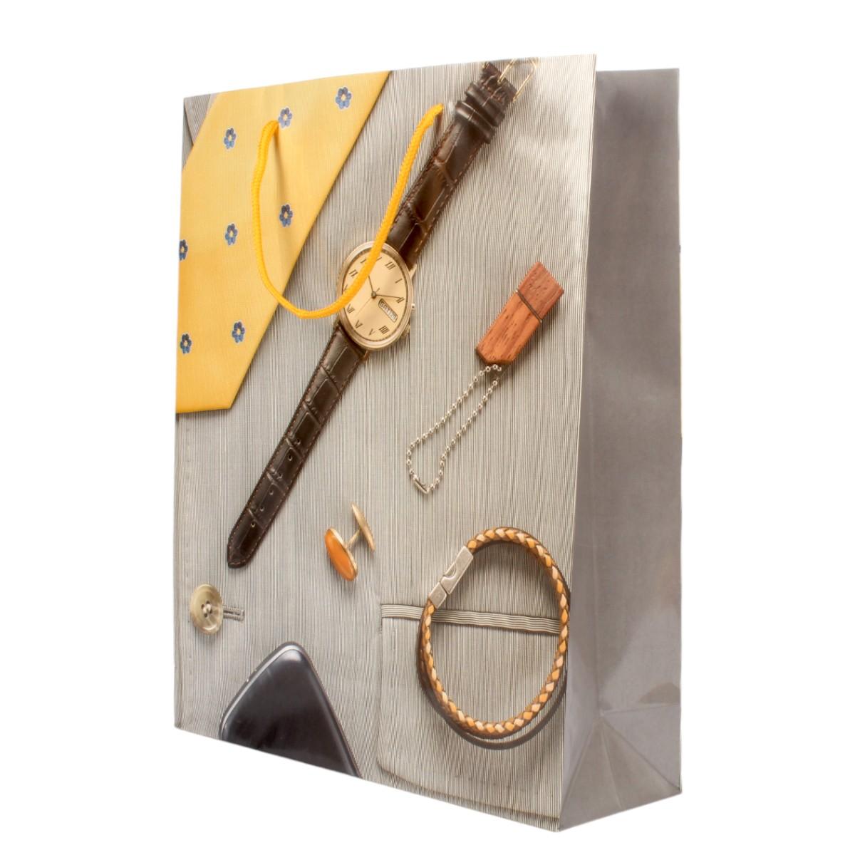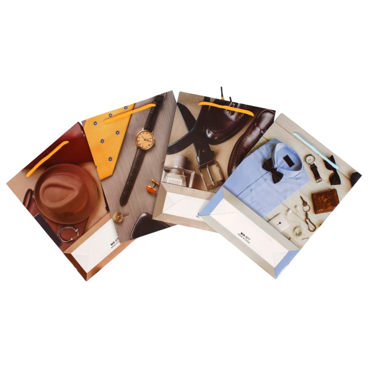 Пакет подарочный для мужчин, 28х34х9 см, стильный дизайн, ручки-шнурок, 4 цвета