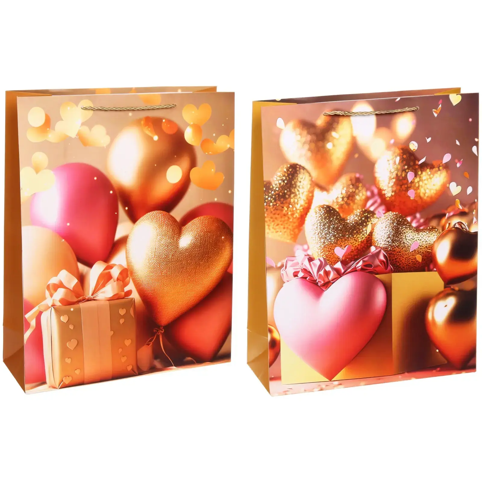 Изготовленный из прочной бумаги, пакет "Море сердец" рассчитан на то, чтобы надежно удержать ваш подарок. Его размеры 31x40x12 см позволяют разместить внутри как небольшие, так и довольно объемные предметы. Дизайн пакета — настоящее произведение искусства: разнообразие оттенков розового, золотого, персикового и красного, металлические и глянцевые эффекты, изображения сердечек и праздничных шаров создают эффектный и запоминающийся образ. Каждая деталь продумана для того, чтобы ваш подарок выглядел максимально презентабельно.
