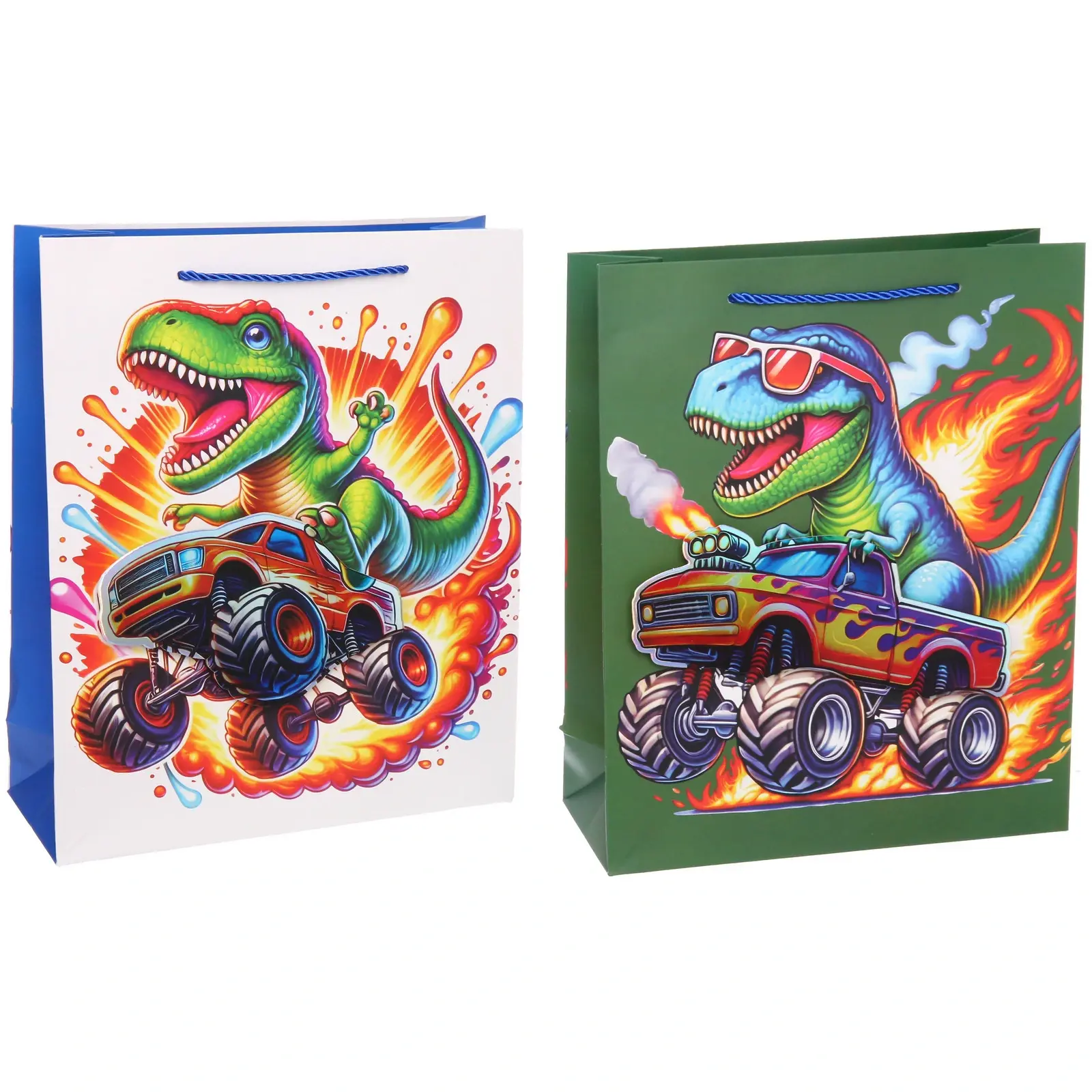 Каждый пакет украшен уникальным, мультяшным дизайном с дерзкими динозаврами, которые точно поднимут настроение. Представьте восторг ребенка или улыбку близкого человека, получившего подарок в такой оригинальной упаковке! Яркие цвета, динамичные сюжеты с динозаврами за рулем кабриолетов, в солнечных очках и даже с огненными эффектами – это настоящее произведение искусства, которое скажет больше слов.