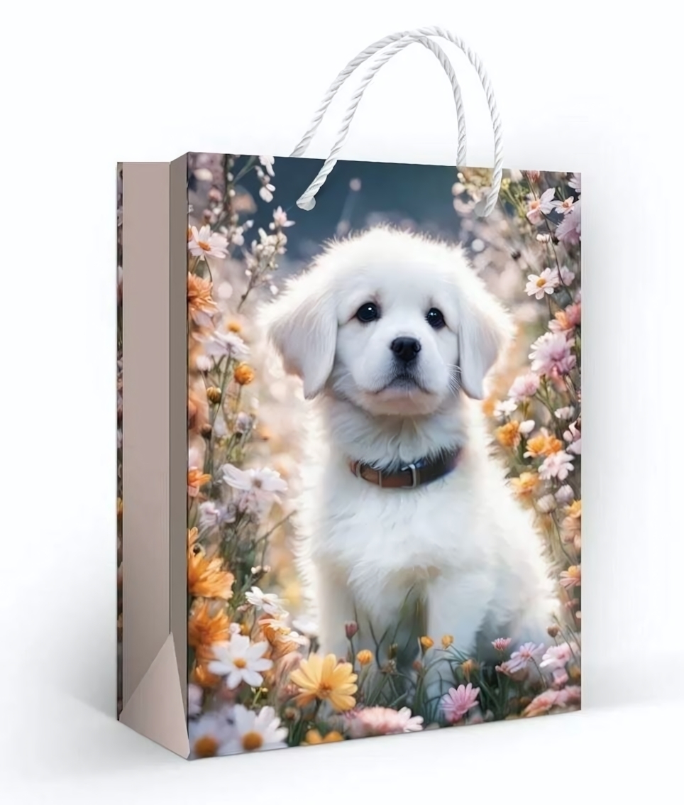 Пакет подарочный "Белый щенок" — идеальный выбор для любого праздника