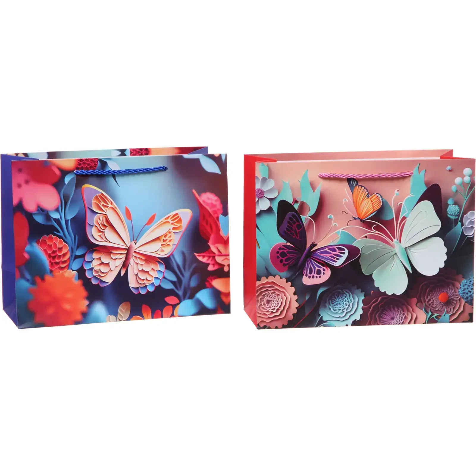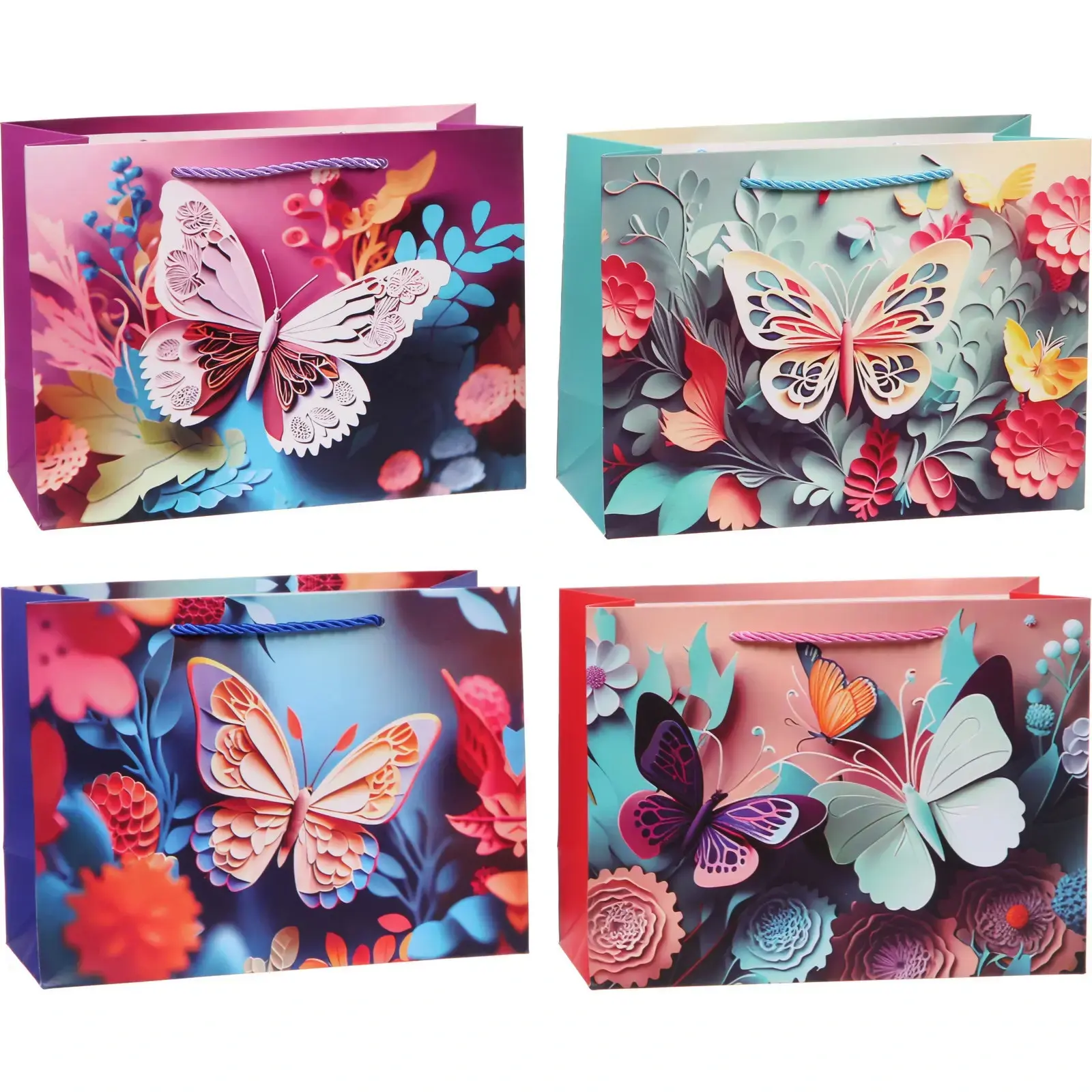 Пакет подарочный «Бабочка» 24×18×10 см, 4 цвета, 3D-дизайн, бумага