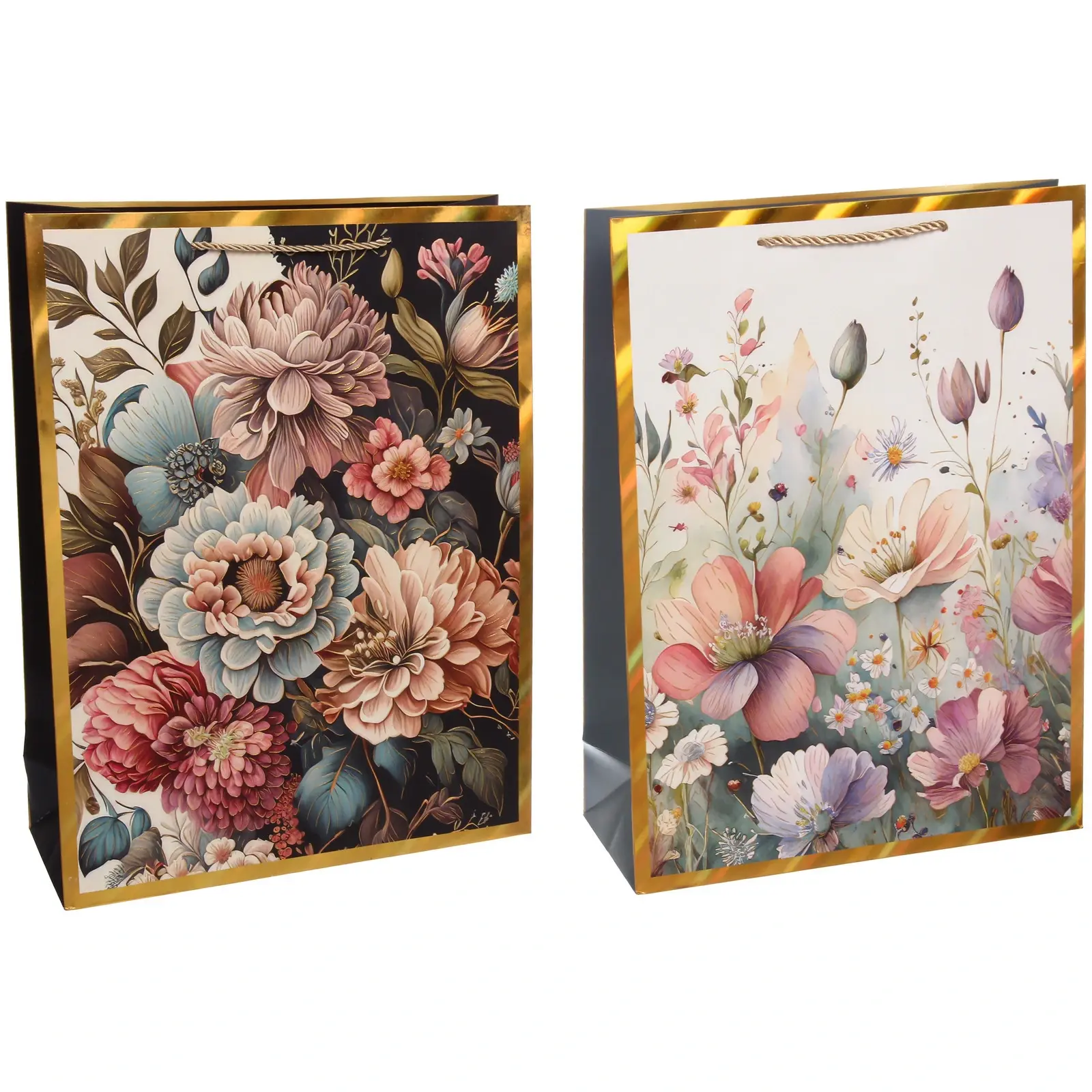 Создайте незабываемое впечатление от подарка с подарочным пакетом «Ноктюрн». Его изысканный дизайн с детализированными цветочными иллюстрациями и золотой окантовкой превращает даже самый простой сюрприз в произведение искусства. Прочная конструкция и удобные ручки-шнурки обеспечат презентабельный вид и комфортную переноску вашего подарка.