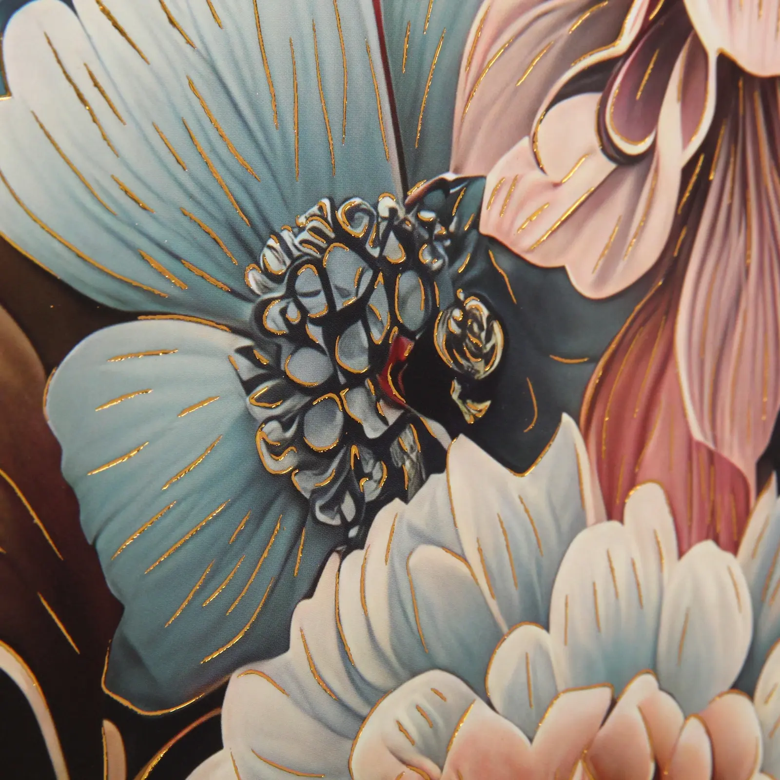 - Элегантный дизайн: Каждый пакет украшен уникальным цветочным рисунком в двух вариантах фона — на тёмном и на светлом. Тонкие золотистые линии подчёркивают контуры лепестков и прожилки, добавляя роскоши и объёма.