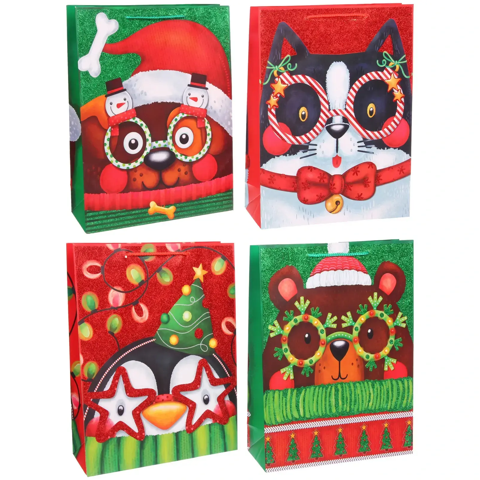 В наборе представлены различные дизайны с изображениями животных в новогодних костюмах: очаровательный пес в шапке Санты, элегантный кот в бабочке, игривый пингвин и медведь в рождественских очках.