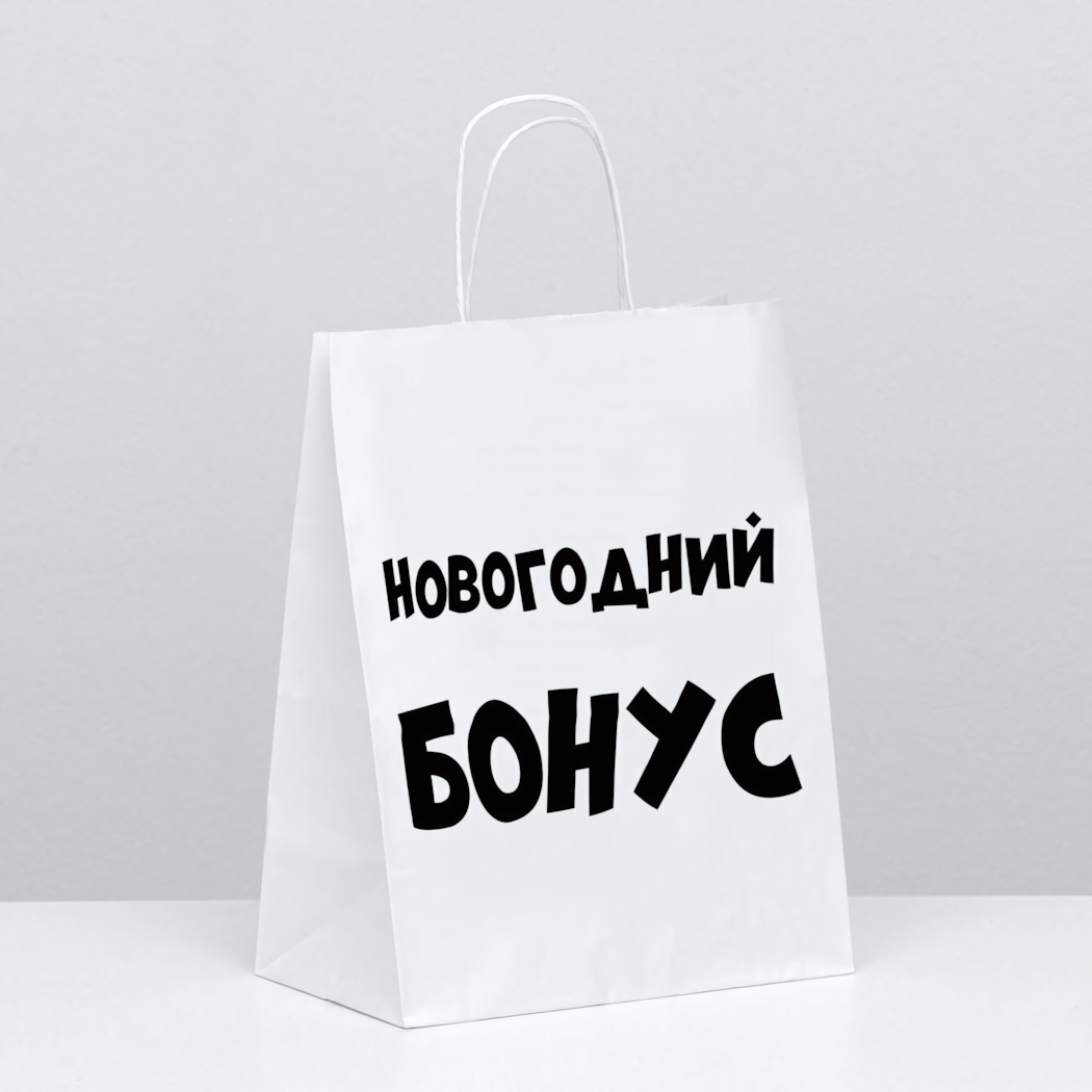 Создайте атмосферу волшебства и радости с подарочным пакетом "Новогодний бонус". Этот стильный белый пакет с крупной черной надписью станет отличным дополнением к любому подарку, подчеркивая его значимость и создавая праздничное настроение. Пакет имеет удобные ручки, что делает его использование простым и комфортным.