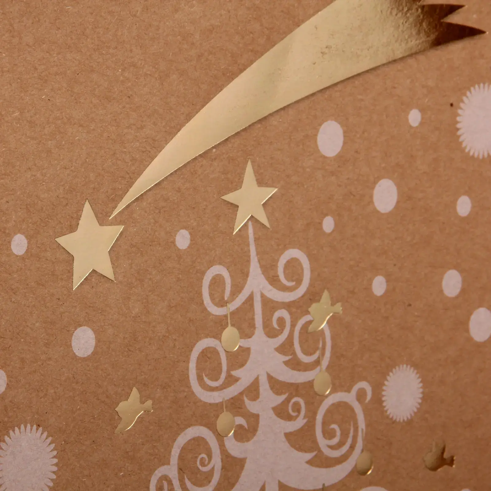 Каждая упаковка украшена эксклюзивными новогодними мотивами: от классических елочек до стильных геометрических узоров. Золотистые элементы добавляют роскоши, а натуральный коричневый фон создает теплую атмосферу.