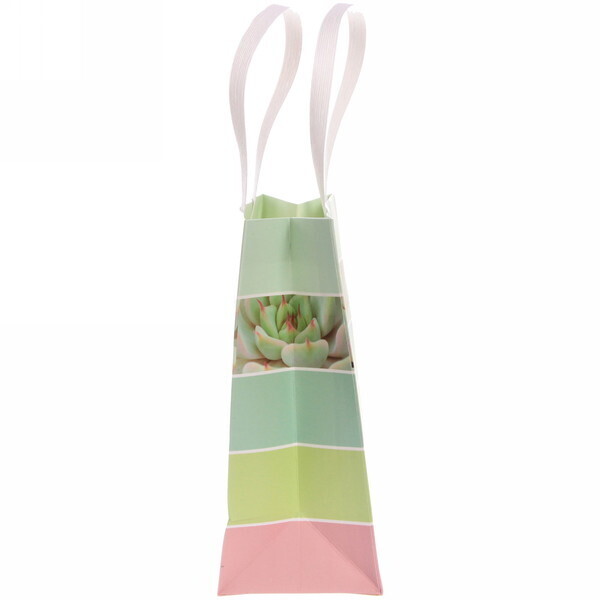 Пакет имеет размеры 23х18х10 см, что делает его универсальным для упаковки различных подарков. Он подходит как для небольших сувениров, так и для более крупных предметов. Благодаря прочному бумажному материалу, пакет надежно удерживает содержимое и защищает его от повреждений. Две удобные ручки обеспечивают комфорт при переноске, а яркий дизайн с цветами и пастельными оттенками привлекает внимание и создает праздничное настроение.