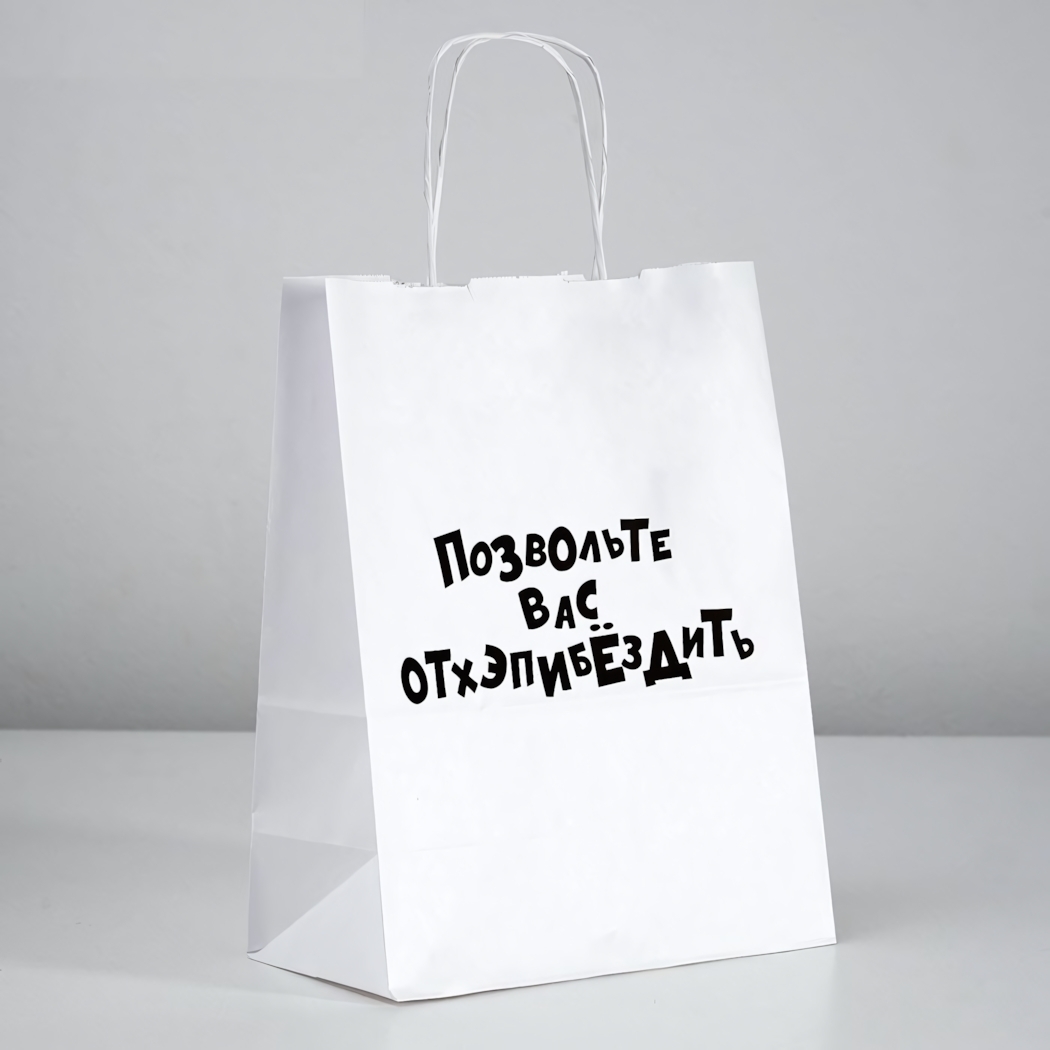 Пакет подарочный «Позвольте вас отхэпибёздить», 24х10х30 см, белый, бумага